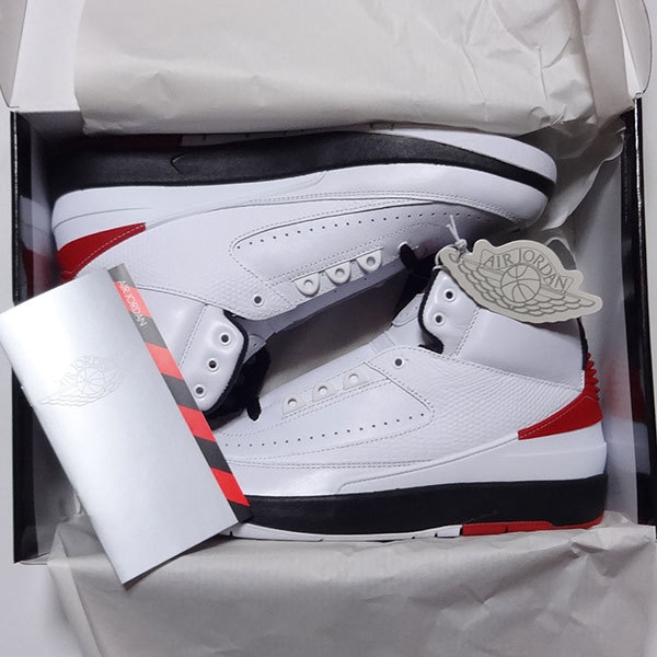 新品 NIKE AIR JORDAN 2 RETRO Chicago ナイキ エア ジョーダン 2 レトロ ホワイト ブラック レッド バッシュ シカゴ 黒タグ 27cm 正規品