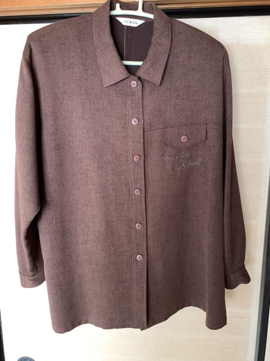美品 女性用 オーバーブラウス風ジャケット 茶 L