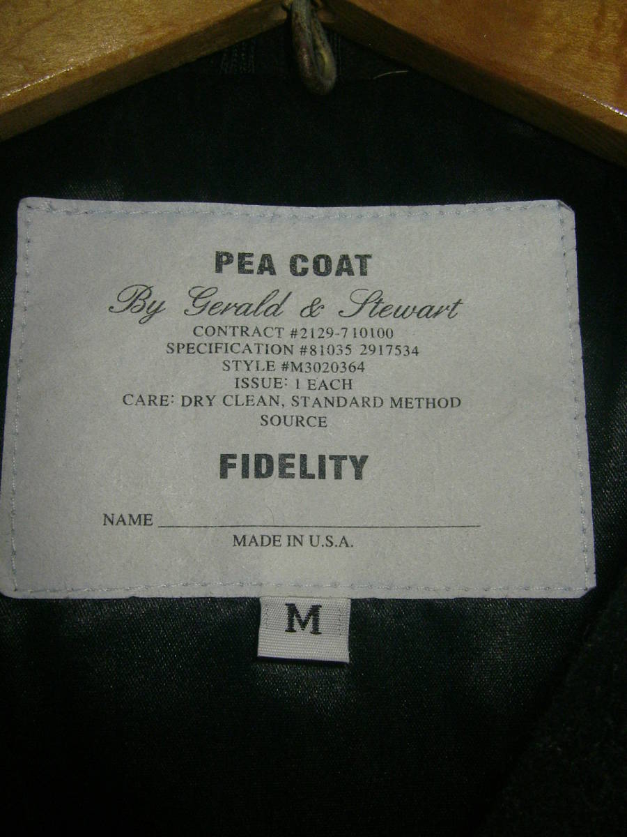 MADE IN USA フィデリティ 黒 ブラック 濃紺 ウール メルトン ピーコート アメリカ製 M コート ダブル フィディリティ ジャケット ( S
