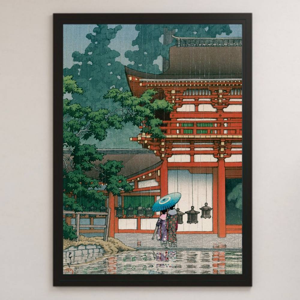 川瀬巴水『奈良春日神社 (雨)』浮世絵 アート 光沢 ポスター A3 バー カフェ 居酒屋 クラシック インテリア 日本画 風景画 寺社仏閣 奈良県
