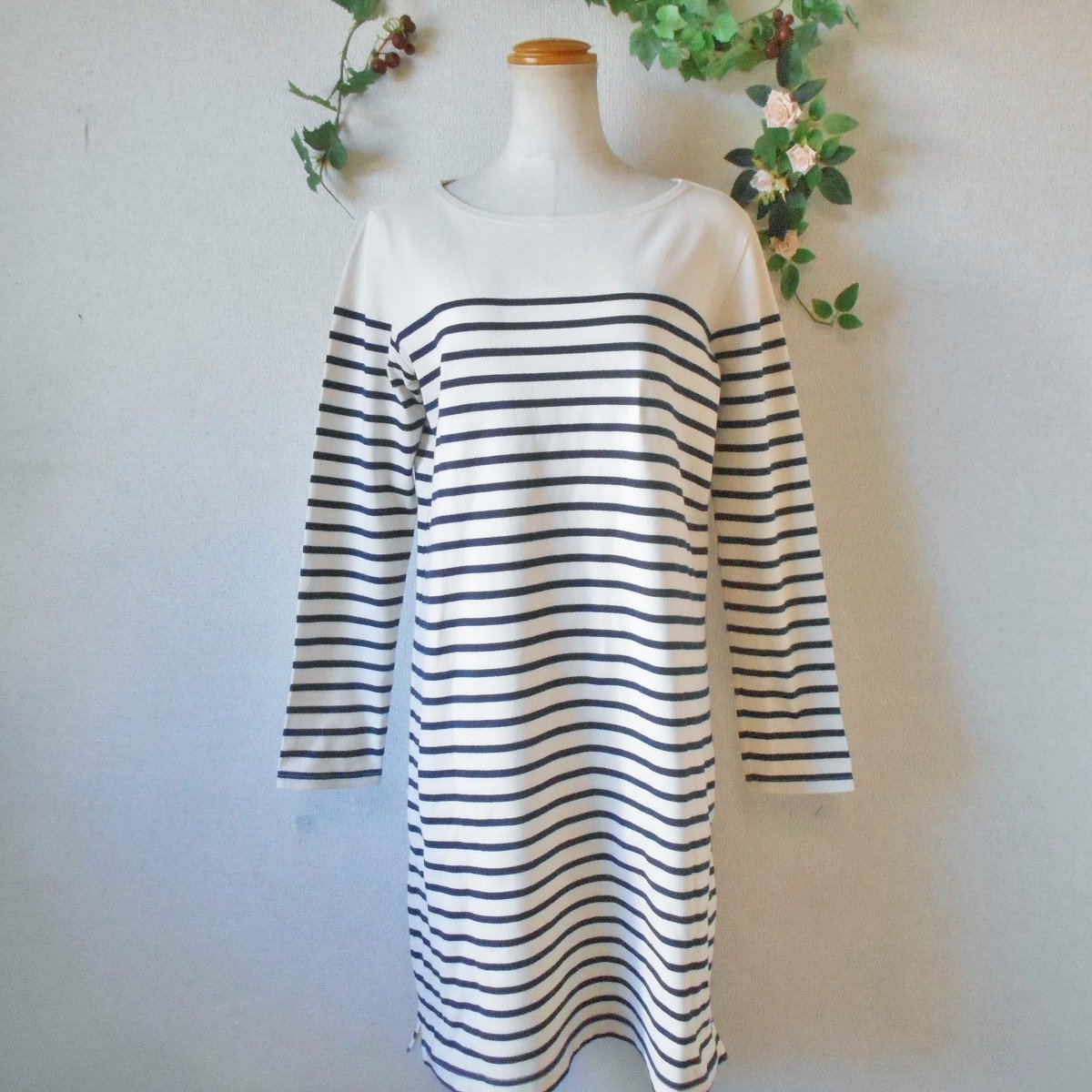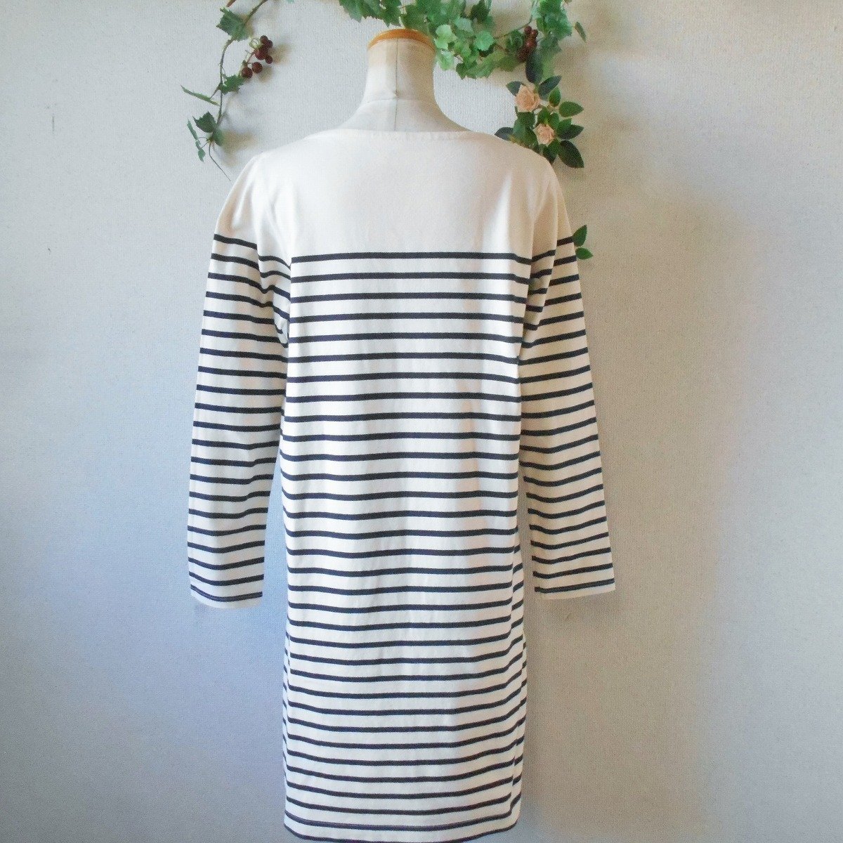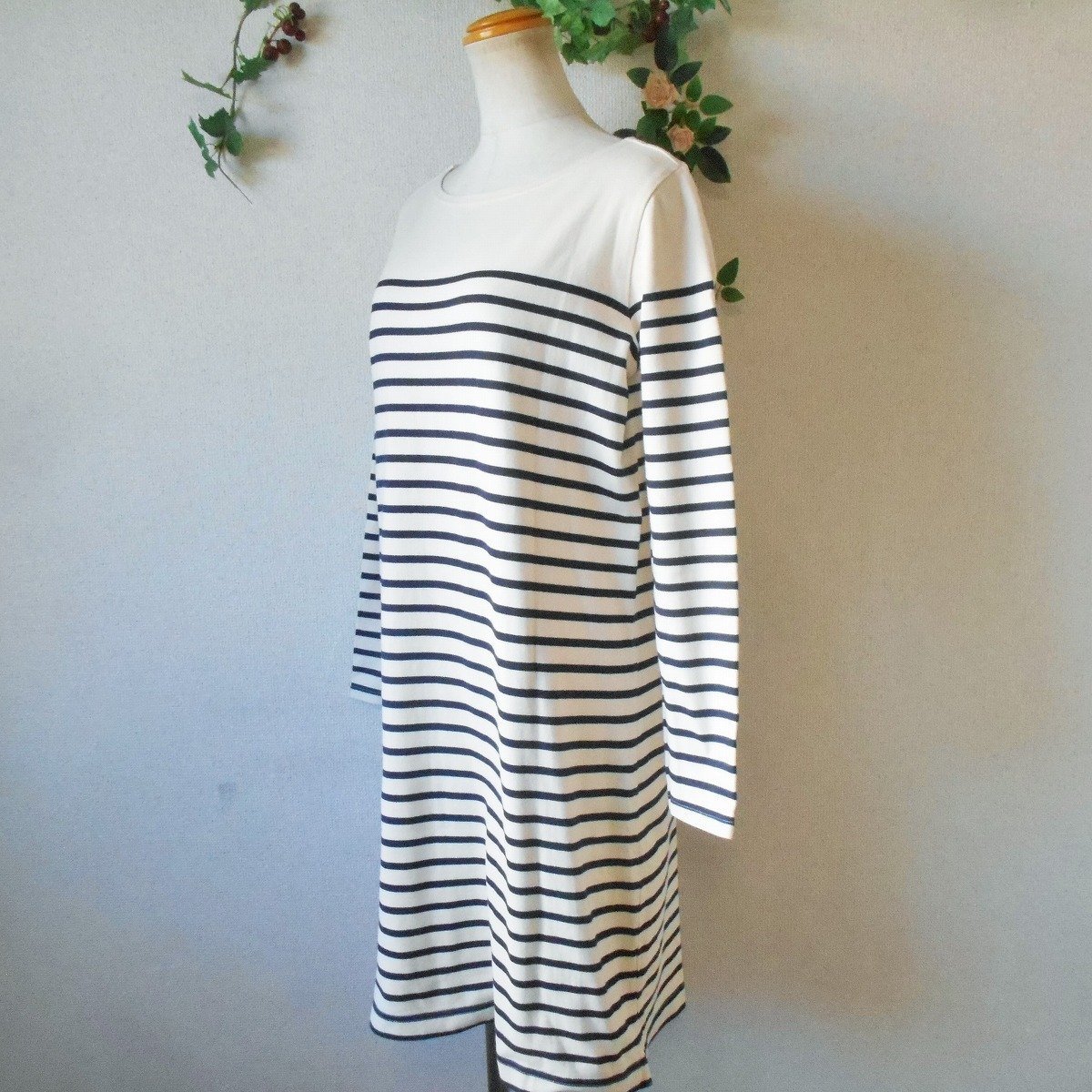 【ポイント】良品計画のワンピースになります。お色はオフホワイト系のベースカラーでネイビーのボーダー柄が入っています。
