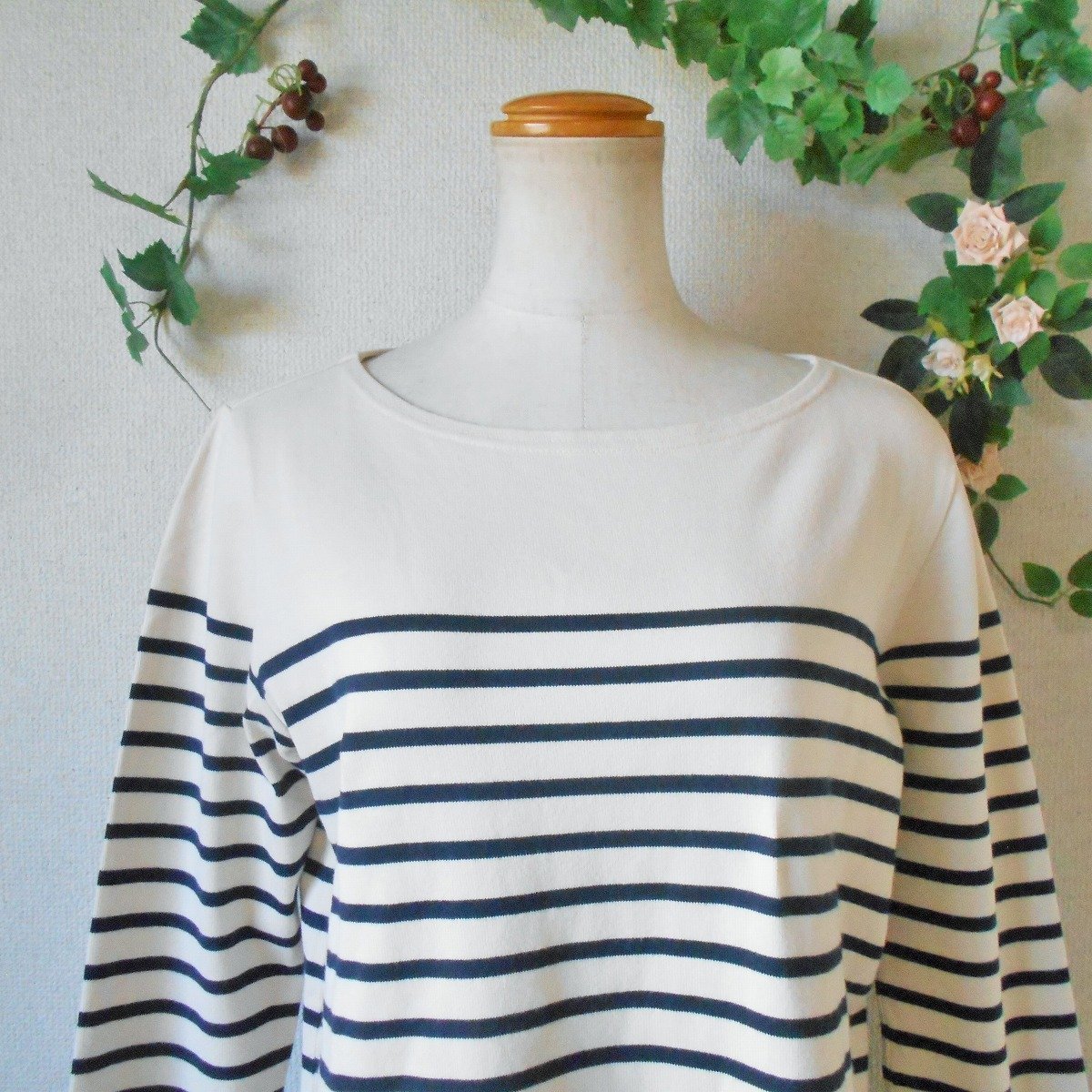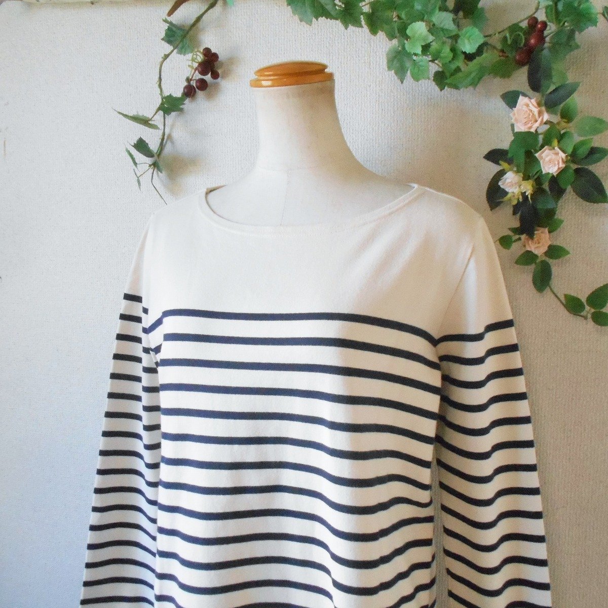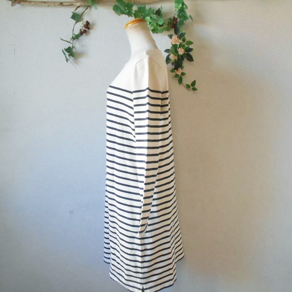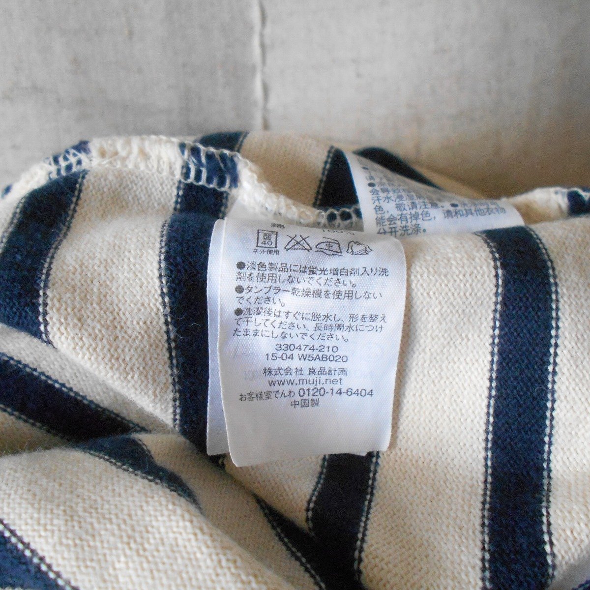 【ポイント】良品計画のワンピースになります。お色はオフホワイト系のベースカラーでネイビーのボーダー柄が入っています。