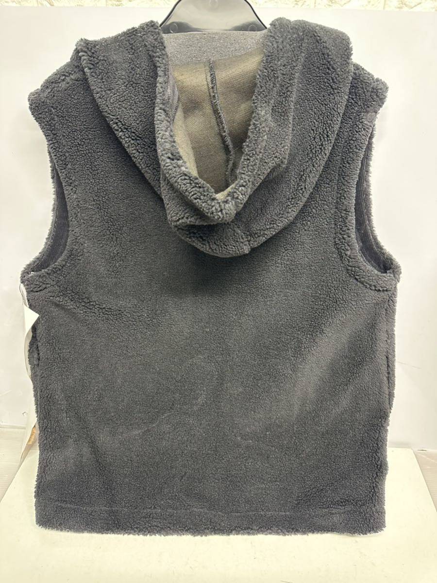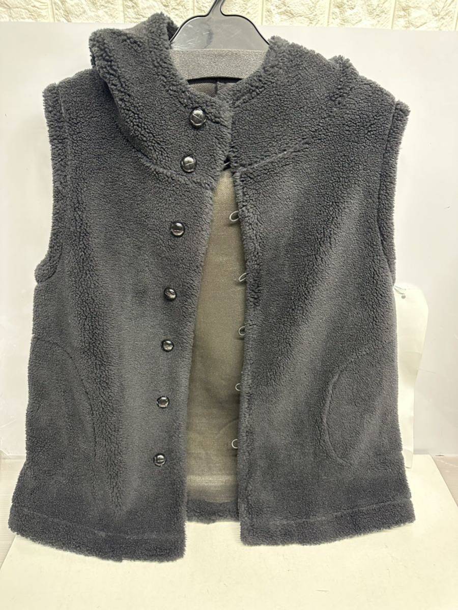 AB394/未使用 黒 ブラック ボア フード あったかベスト ノースリーブ ジャンパー M寸相当