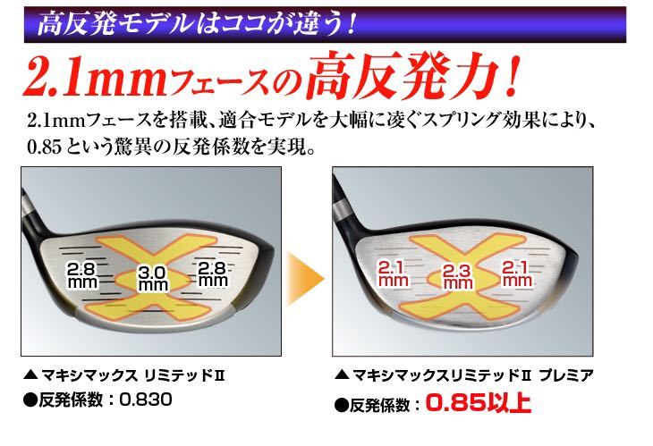 ※反発係数が0.01上がると理論上10ヤード飛距離が伸びますので、このモデルの数値は20ヤードアップを意味します。