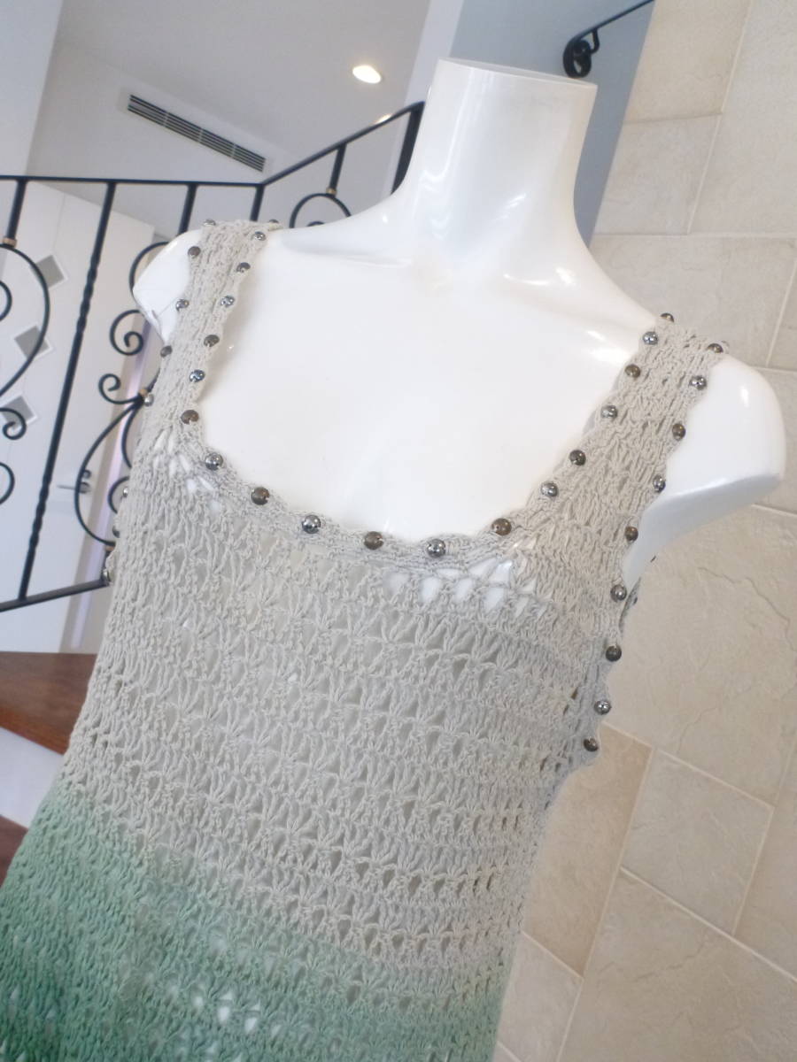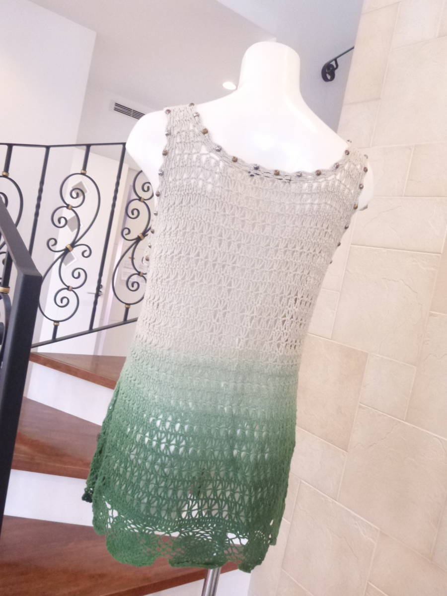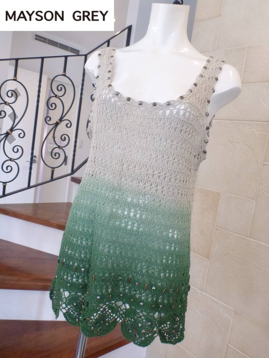美品 MAYSON GREY(メイソングレイ) ★ベージュ×グリーン 透かし編みニット 2 M相当
