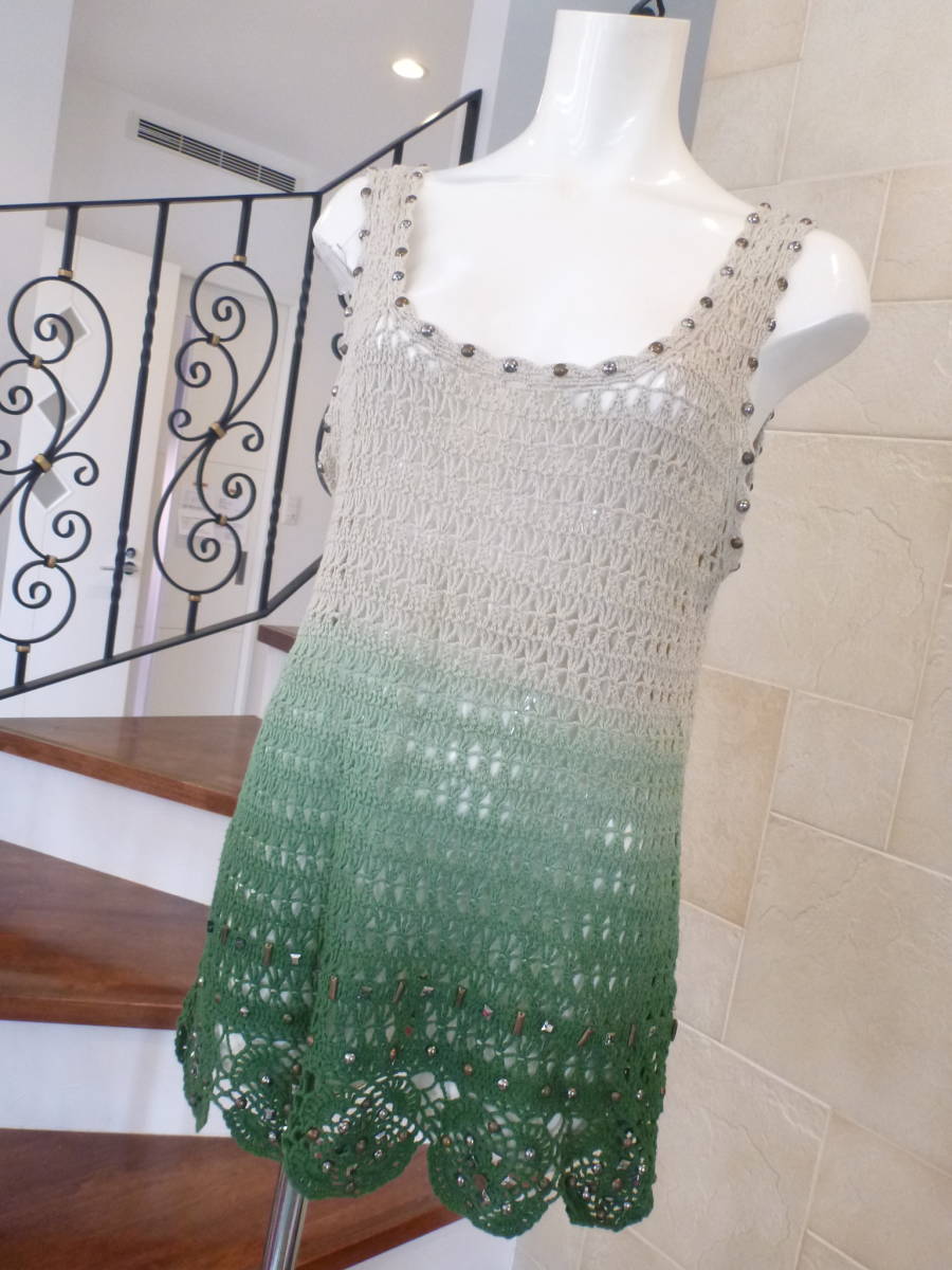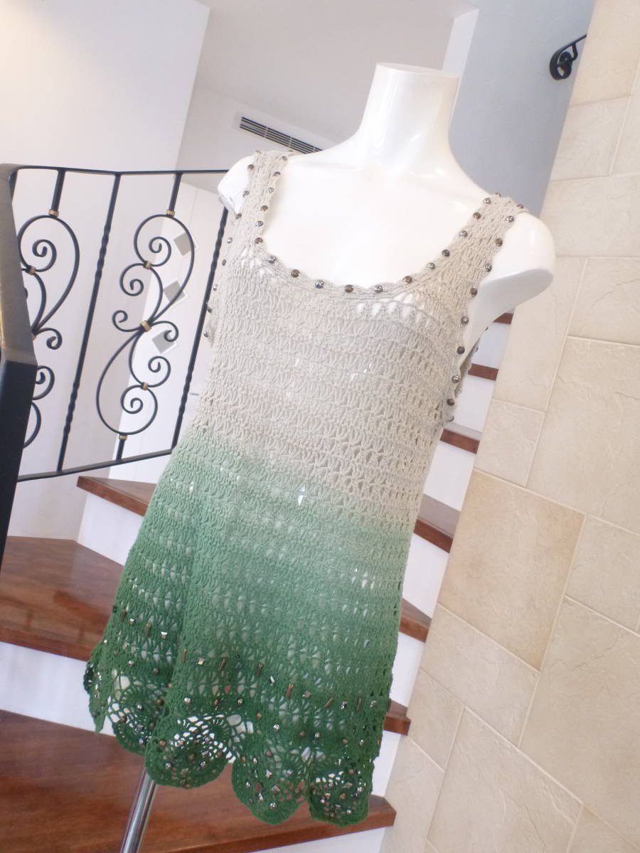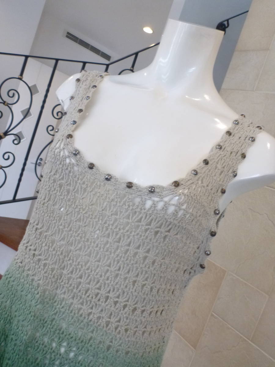 美品 MAYSON GREY(メイソングレイ) ★ベージュ×グリーン 透かし編みニット 2 M相当