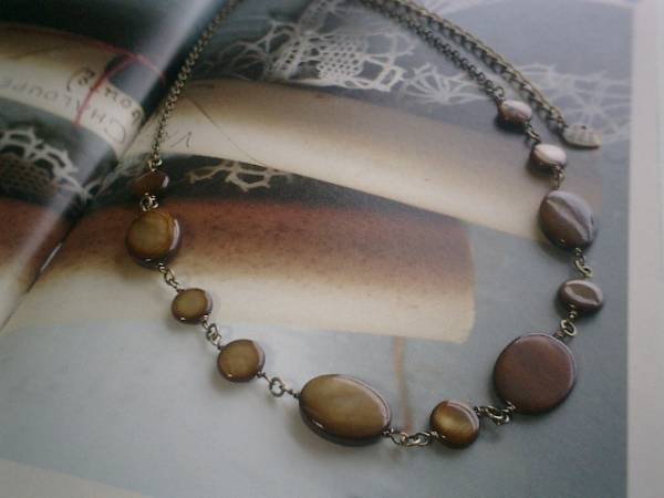 女の子チック・・シリーズです♪シックなブラウンシェルのネックレスです♪ブラウンシェルは10ミリのコイン、13×18ミリ、15×20ミリのフラットオーバルです♪長さは45センチ+アジャスター12センチで最長57センチ位です♪♪お揃いのネックレスやブレスレットも出品しています♪シンプルで飽きのこないいつまでも着けられるデザインを考えて作りました!ハンドメイドをご理解頂いてノークレーム、ノーリターンでお願いします
