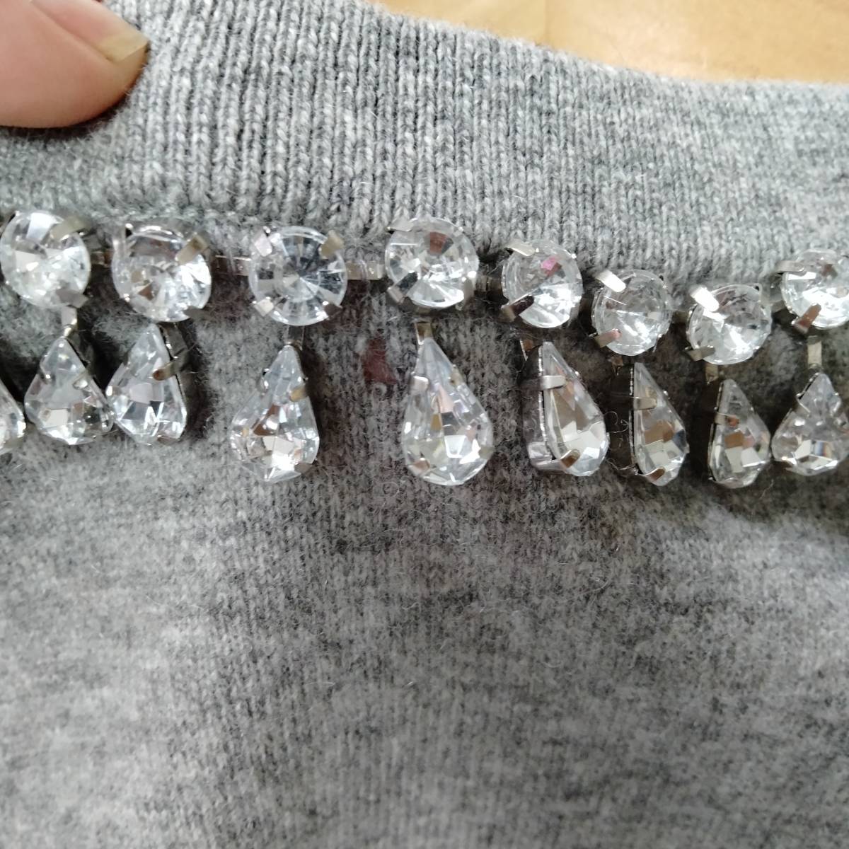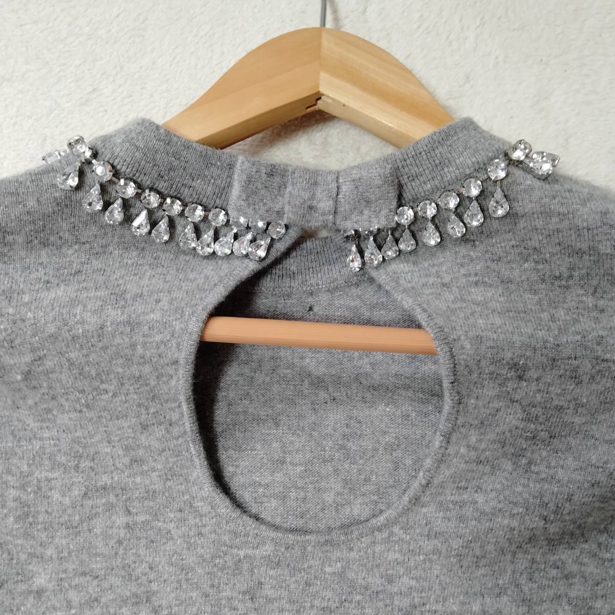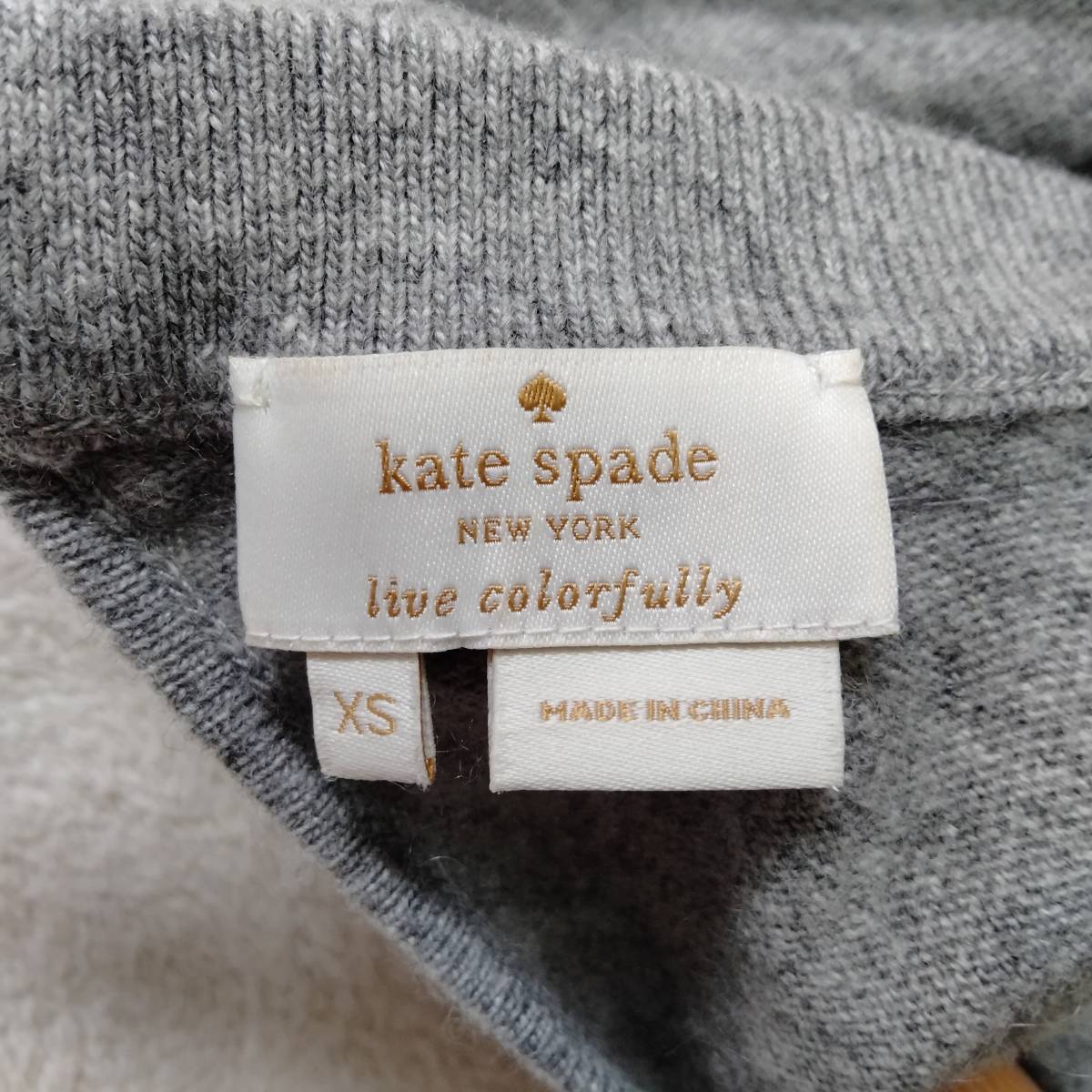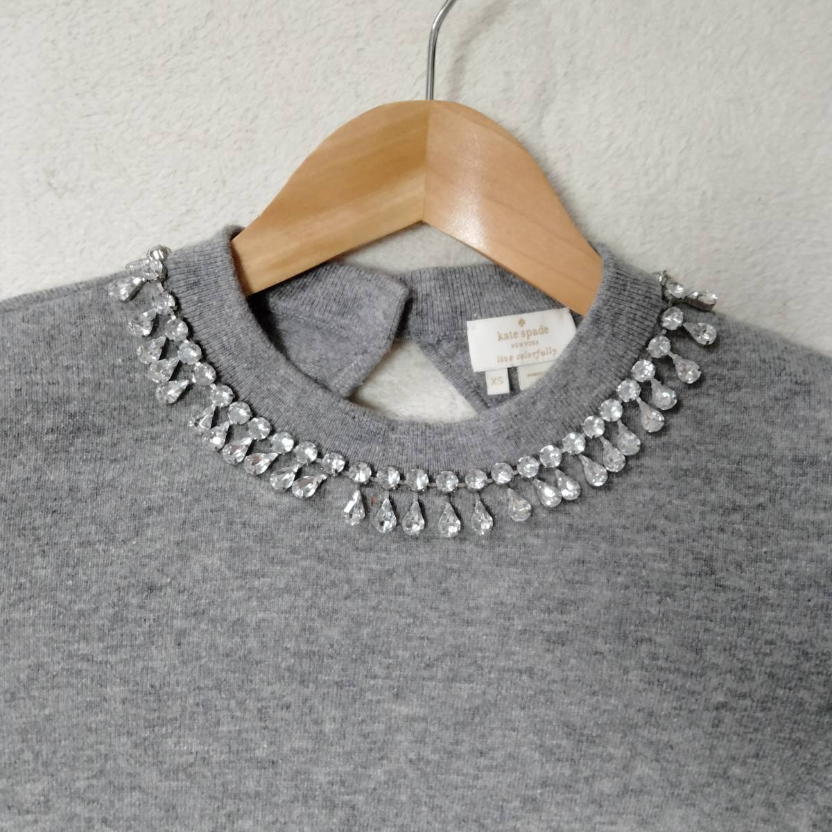 kate spade new york ケイト・スペード ニューヨーク ビジュー ニット トップス 無地 長袖 ショート丈 高級感 グレー サイズXS SJJ59