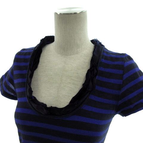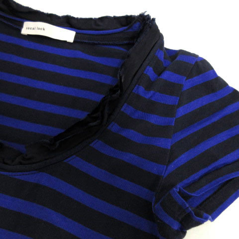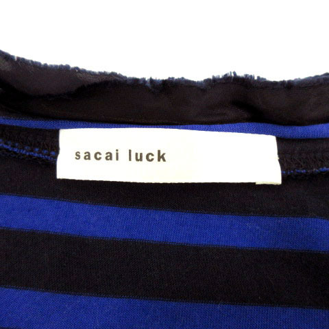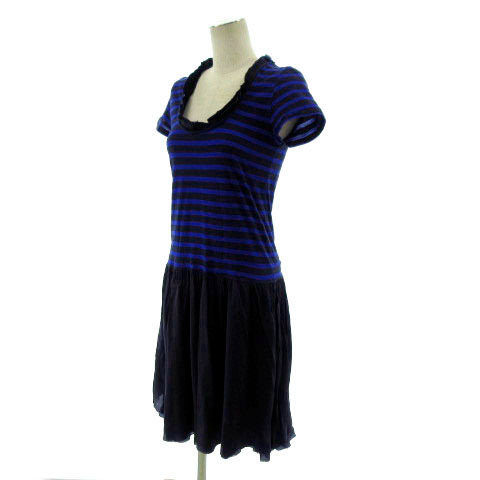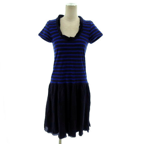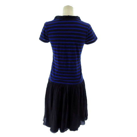 サカイラック sacai luck ワンピース 半袖 ミディ丈 切替え ドッキング フリンジ ボーダー ブルー 青 ネイビー 紺 2 レディース