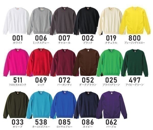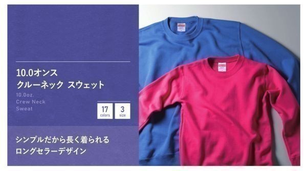 10.0オンス クルーネック スウェット 110・130・150展開