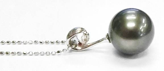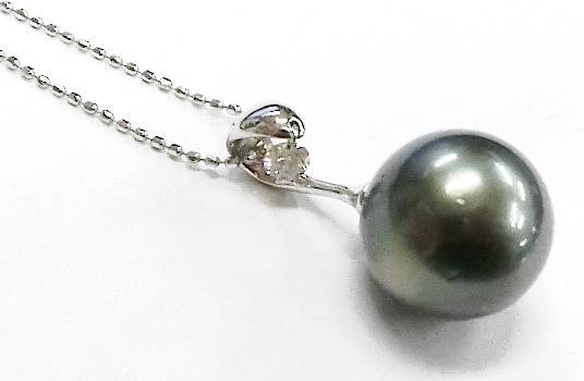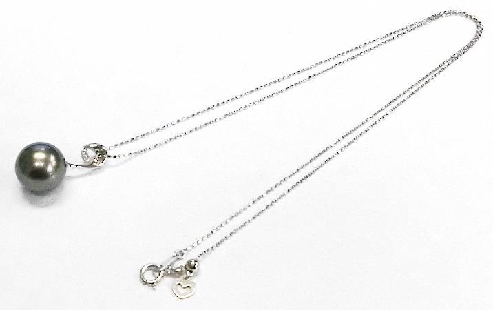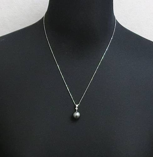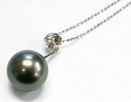 【13-77】K18WG パール ダイヤモンド0.10ct ペンダント付きネックレス【菊地質店】
