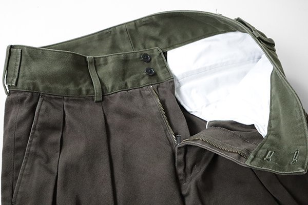● 送料無料♪ TOMORROWLAND ◆30/2コットンウエポン 2プリーツパンツ 茶×オリーブ Sサイズ チノパン テーパード トゥモローランド ◆XE2