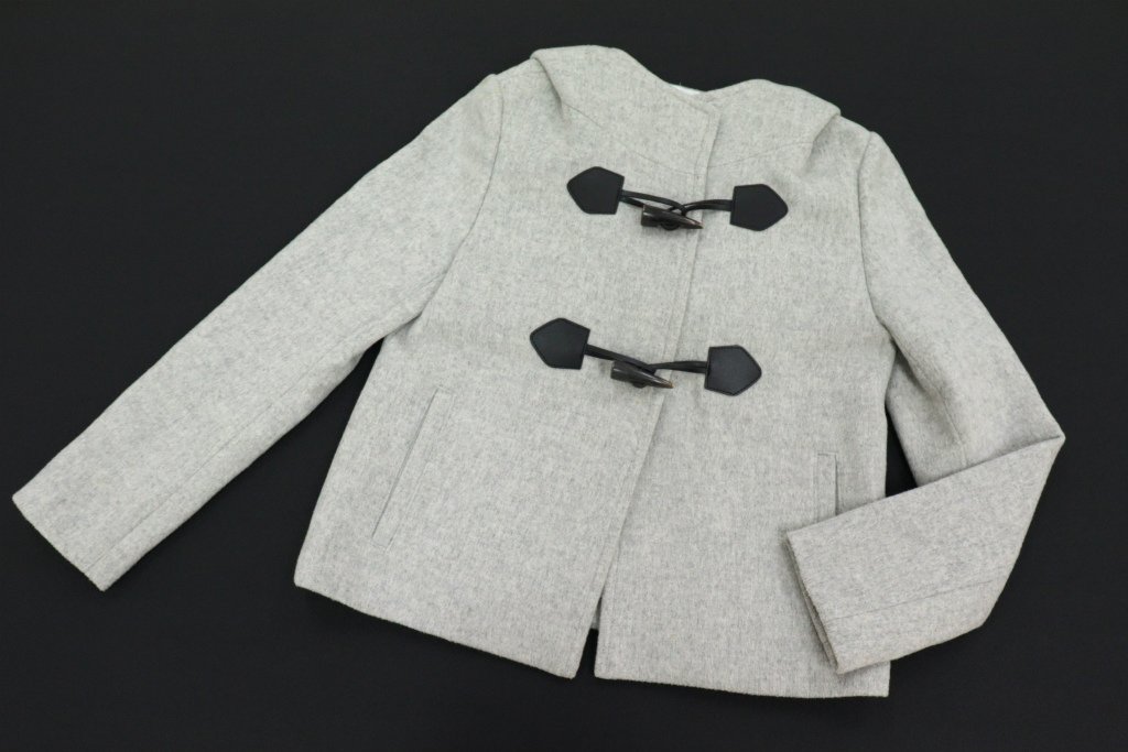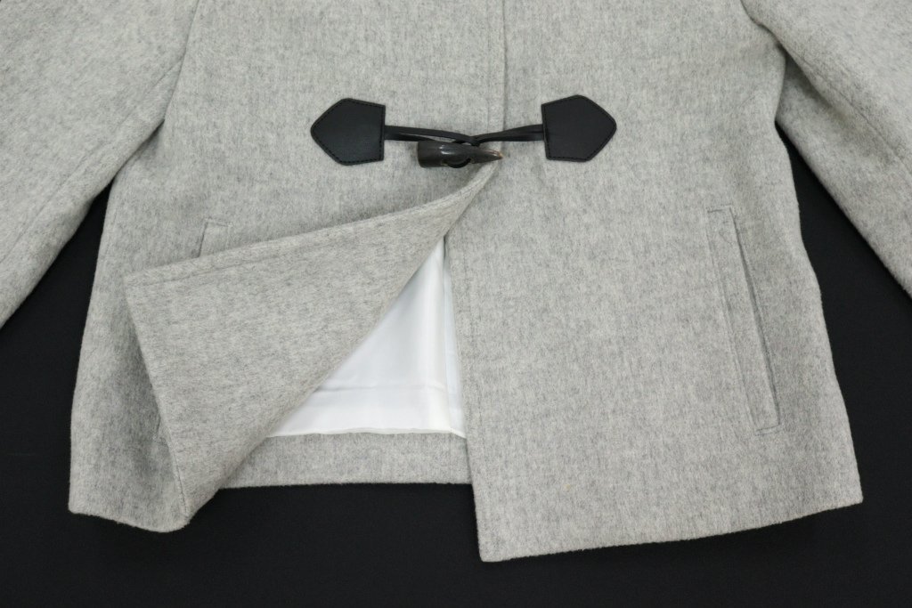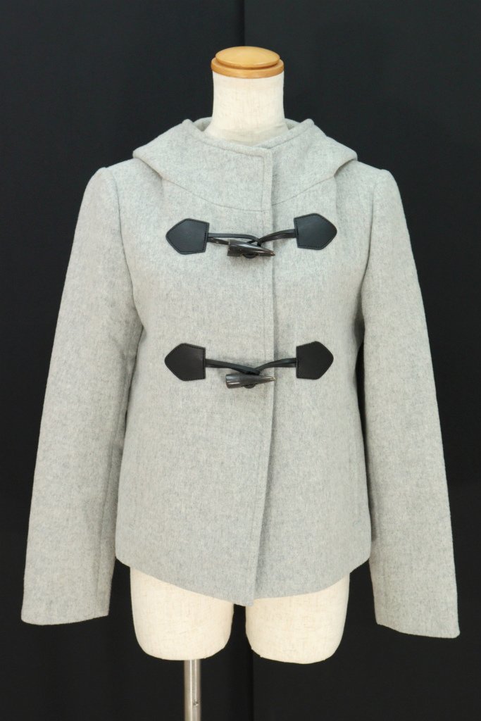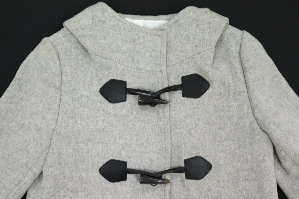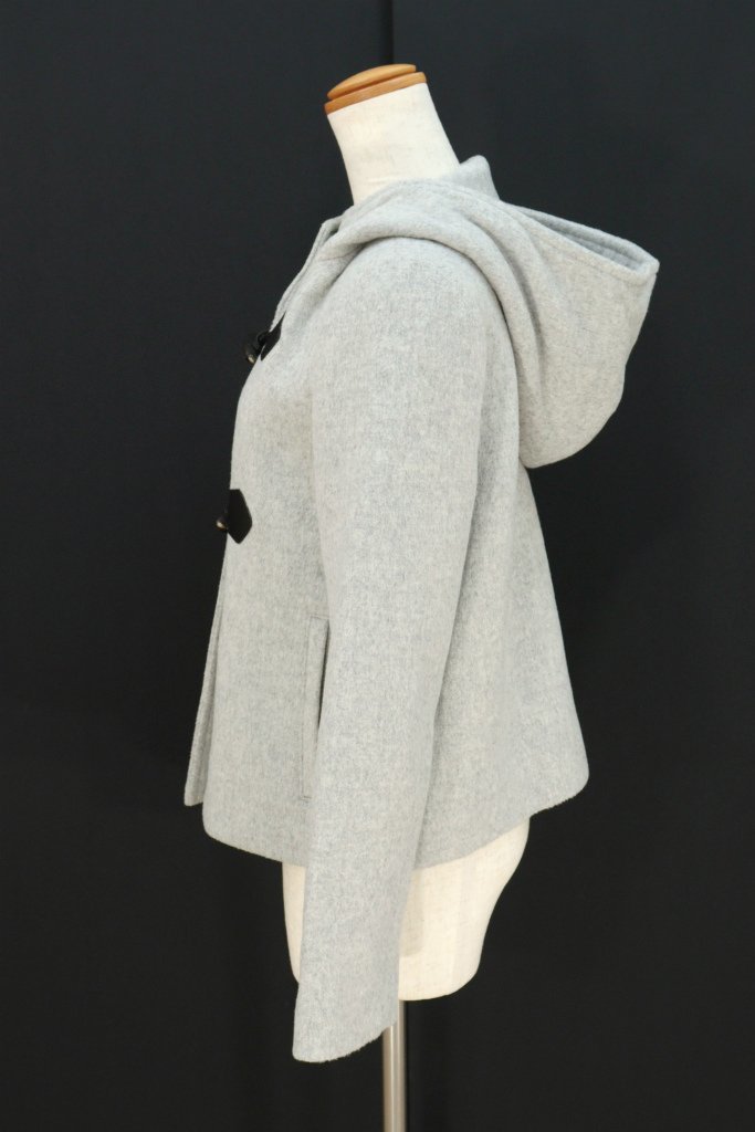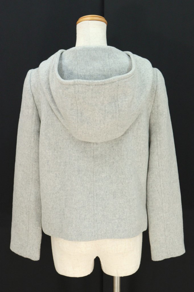 小さいサイズ Mプルミエ ウール素材フード付き長袖ダッフルコート グレー36 bf644
