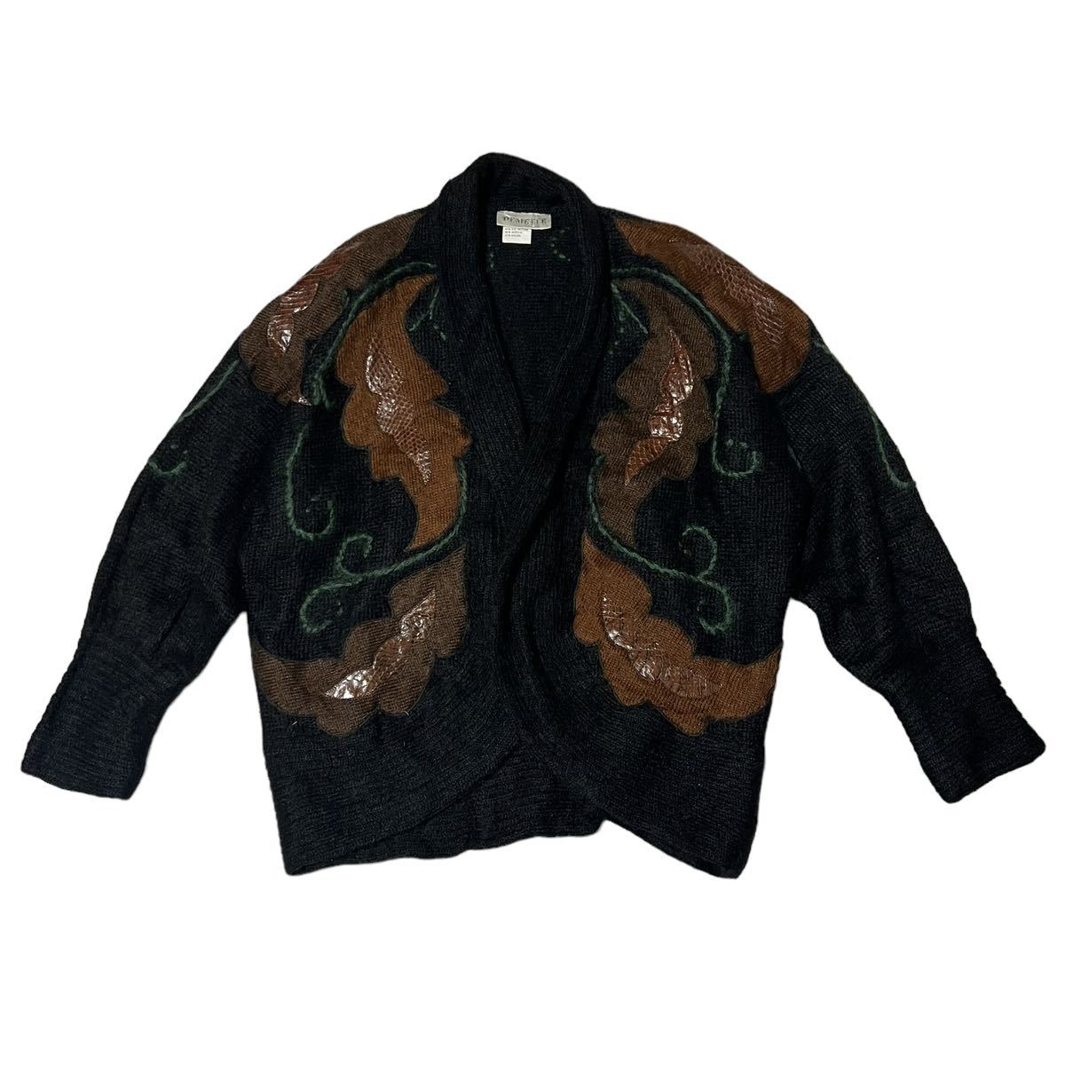 黒ベースに刺繍とパイソンレザーのパッチワーク。