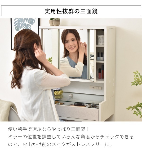 ![]() 三面鏡ドレッサー ホワイト 配送について 納期:入金確認後3営業日内(土日祝除く)に発送いたします。 ※お支払いは、代引き不可となります。 ※お届けは玄関渡しです。他の商品と同梱はできません。 ※こちらの商品は日曜日・祝日は配達不可となり、 日曜日・祝日の日時指定をお受けすることができかねます。 ※お届け先が沖縄・離島の場合、別途送料が発生いたします。 ご注文前に、質問欄よりお問い合せくださいませ。 内容によりましては、返答にお時間を要する場合がございます。 在庫状況について ・在庫状況は日々変動しており、お支払いのタイミングによっては メーカー在庫が欠品となる場合がございます。 ・生産状況や同時注文等により、欠品となる場合もございます。 ・在庫切れの場合はキャンセルとしてお受けいたします。 ・最新の在庫状況のご確認は、質問欄よりお問い合せくださいませ。 ご注意ください ・土日祝はお休みさせていただきます。 ・初期不良の場合はお届け後1週間以内に限り返品交換対応可能です。 ・到着後、破損不良等の有無をお確かめ下さい。 ・返品・交換は、配送時の梱包のまま使用いただくようお願いします。 なお梱包材が無い場合でのお引取りはできませんのでご注意下さい。 ・お客様都合によるイメージ違い、サイズ間違い等の事由では、 交換・返品・キャンセル等お受けできません。 ご不明点などありましたらお気軽にお問い合わせください。 すぐにお返事できない場合もございますので、余裕をもってのお問い合わせをお願い致します。 Lb0002FDRwh |
