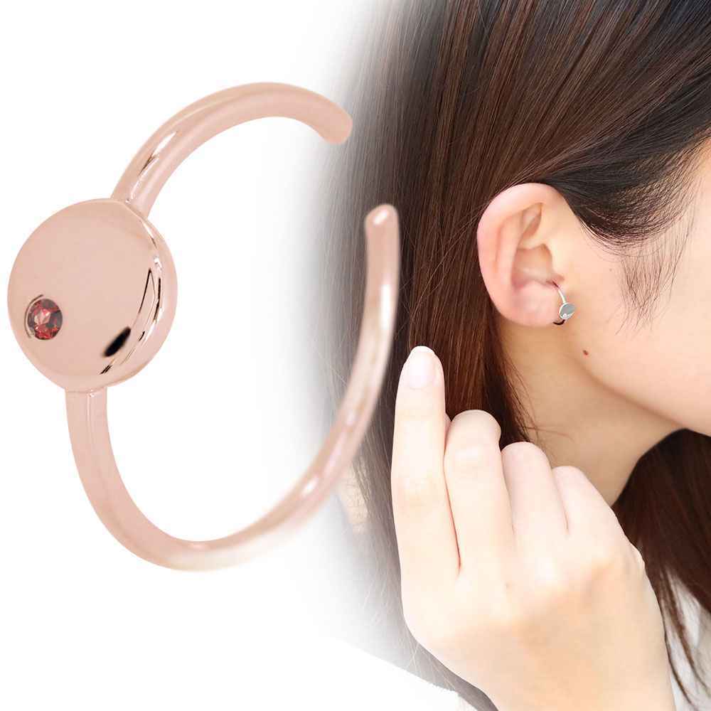 1月誕生石ガーネットを使用した10金製の、幾何学デザイン(丸)のイヤーカフです。
