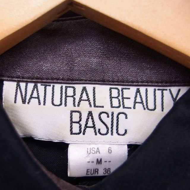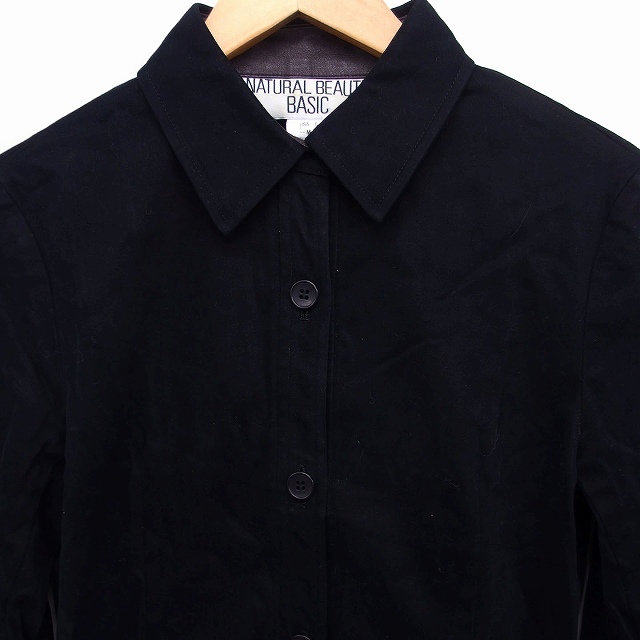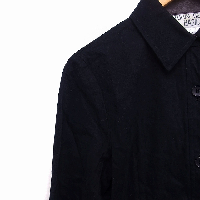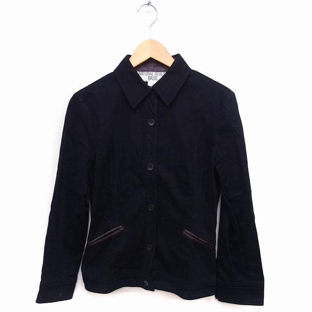 ナチュラルビューティーベーシック NATURAL BEAUTY BASIC ステンカラー ジャケット アウター 切替フェイクレザー 無地 綿 M ブラック 黒 /FT38 レディース