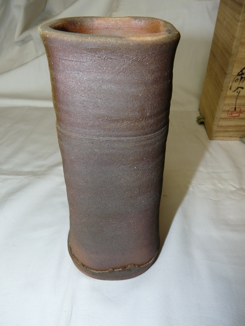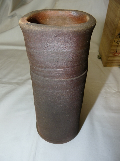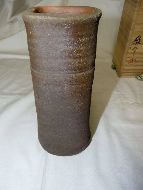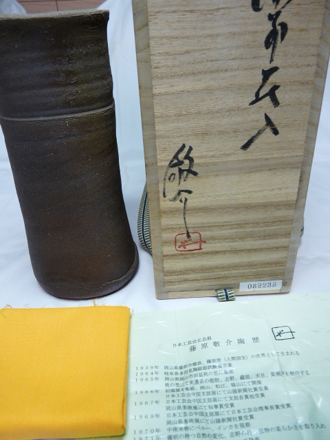 藤原敬介 備前花入2 花器 共箱、共布、栞付き
