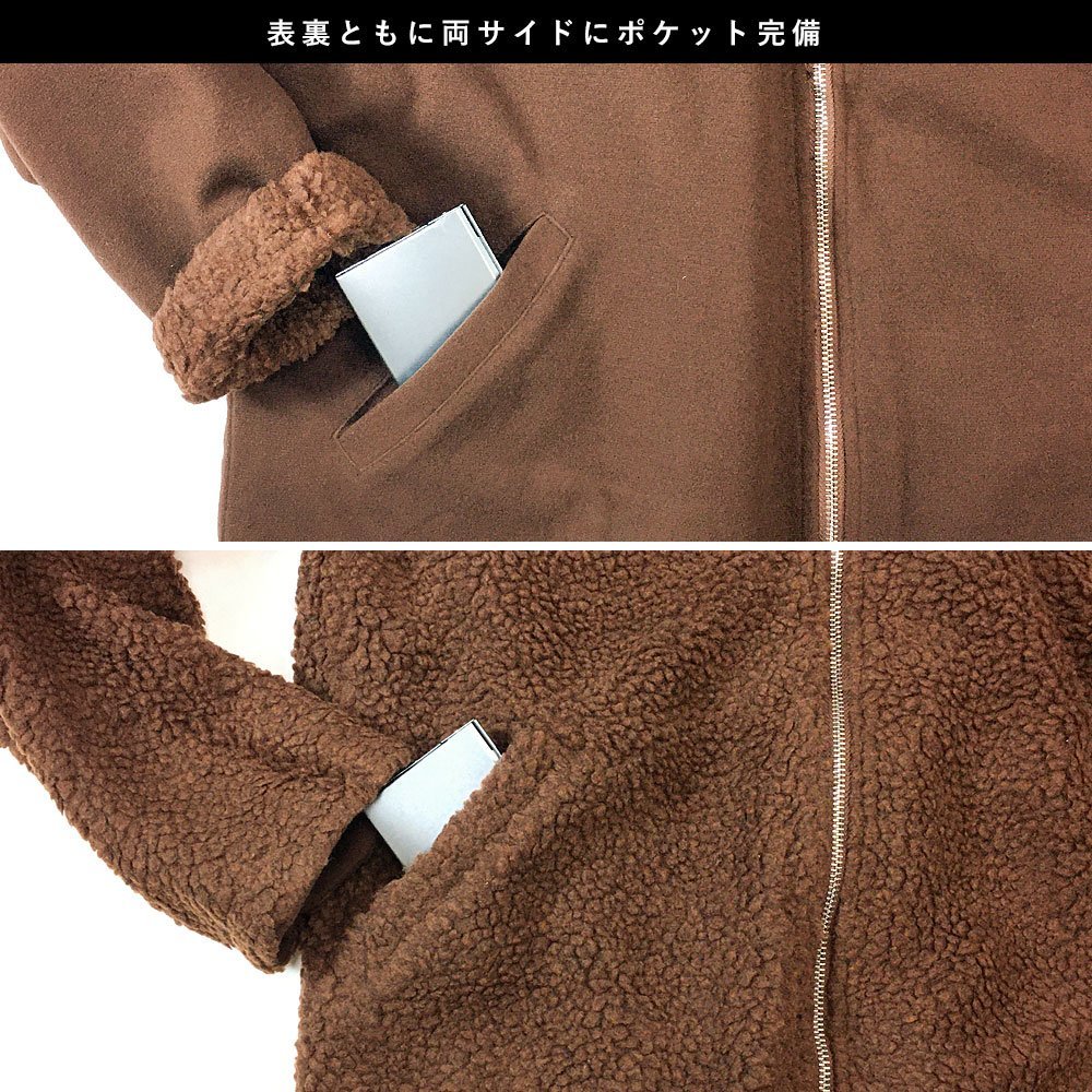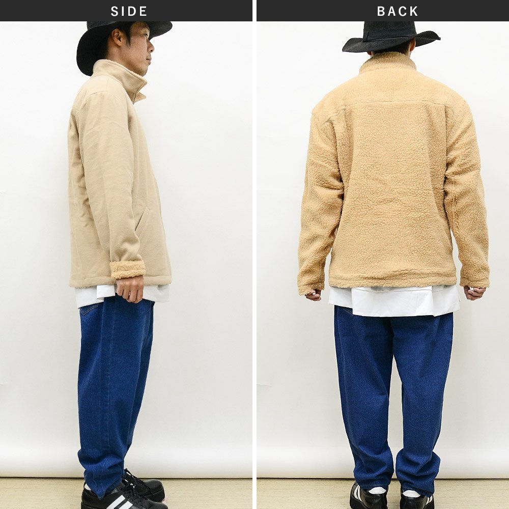 新作【リバーシブルジャケット】の登場。 一着で2通りの着こなしが楽しめるボアジャケットの登場。 表地はムートンのようなフェイクスウェード。 袖口をロールアップして裏地を魅せるのもグッドです。 裏地はもこもことしたボアデザイン。 見た目から暖かさを感じさせる人気の生地になっています。 落ち着いたアースカラーから定番のブラックまで着回しやコーデがしやすく、 今季にフルで活用いただけること間違いなしです。 [商品ポイント] リバーシブル / ボア / フリース / フルジップ / 両ポケット有 / [検索キーワード] カジュアル/ストリート/スポカジ/サロン美容師/お兄/アメカジサーフ/ルームウェア/ キレイメ/韓国ファッション/ビター/BITTER/原宿/韓流/リンクコーデ/部屋着/ ※完売商品、在庫数以上をご希望のお客様は当店までお問い合わせください。 | ||||||||||||||||||||