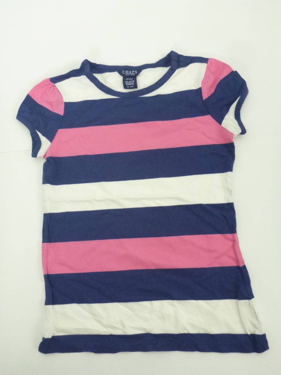 未使用 CHAPS(チャップス) ★紺×白×ピンク ボーダー 半袖 パプ袖 Tシャツ  S(7)…120