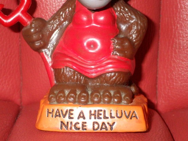 素材はソフビ、サイズは高さ12cmくらい、台座に「HAVE A HELLUVA NICE DAY」のメッセージが書かれています♪
