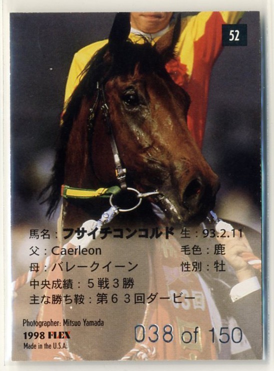 | ★フサイチコンコルド 52番 150枚限定 Fantasy 1998 The Classic シリアル入り ザ・クラシック 1998 ファンタジー 写真 画像 競馬カード | |