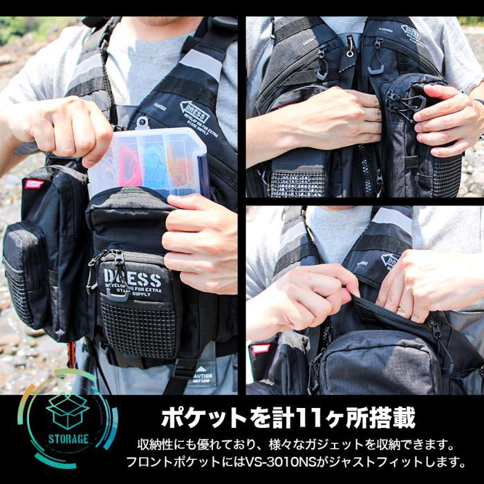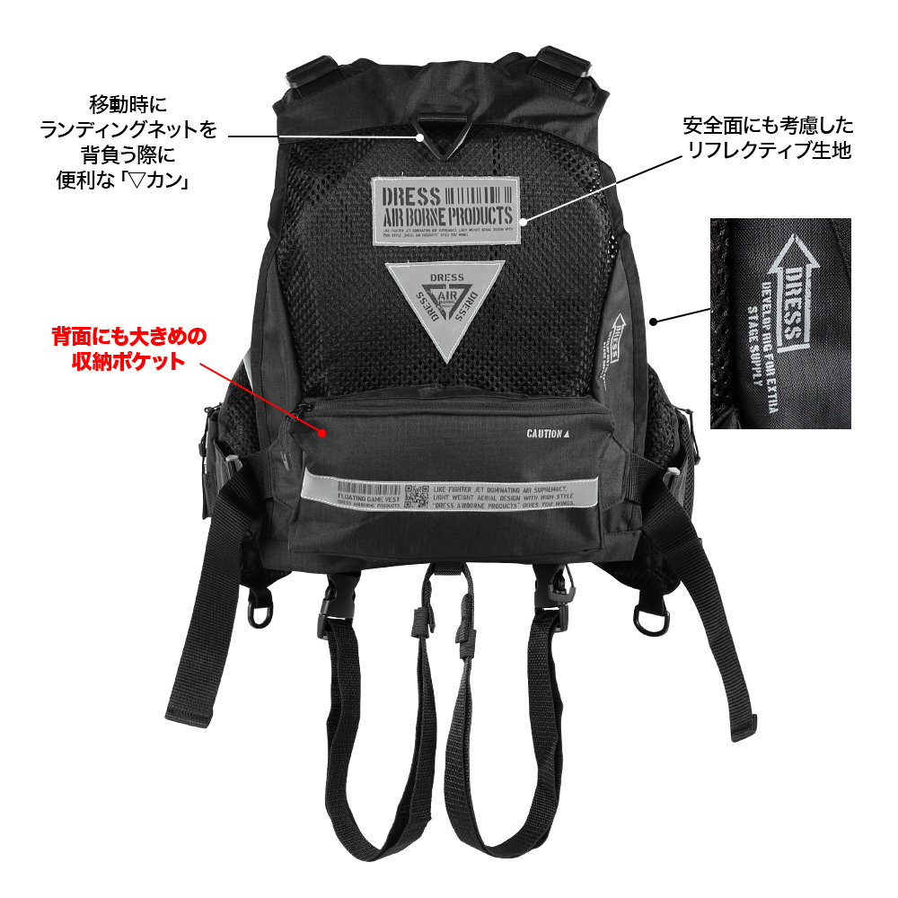 ・落水した際にベストが脱げることを防ぐ、またベルトが付いているので安心して釣りに没頭できます。