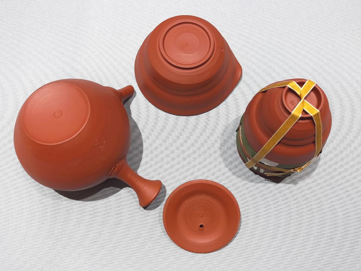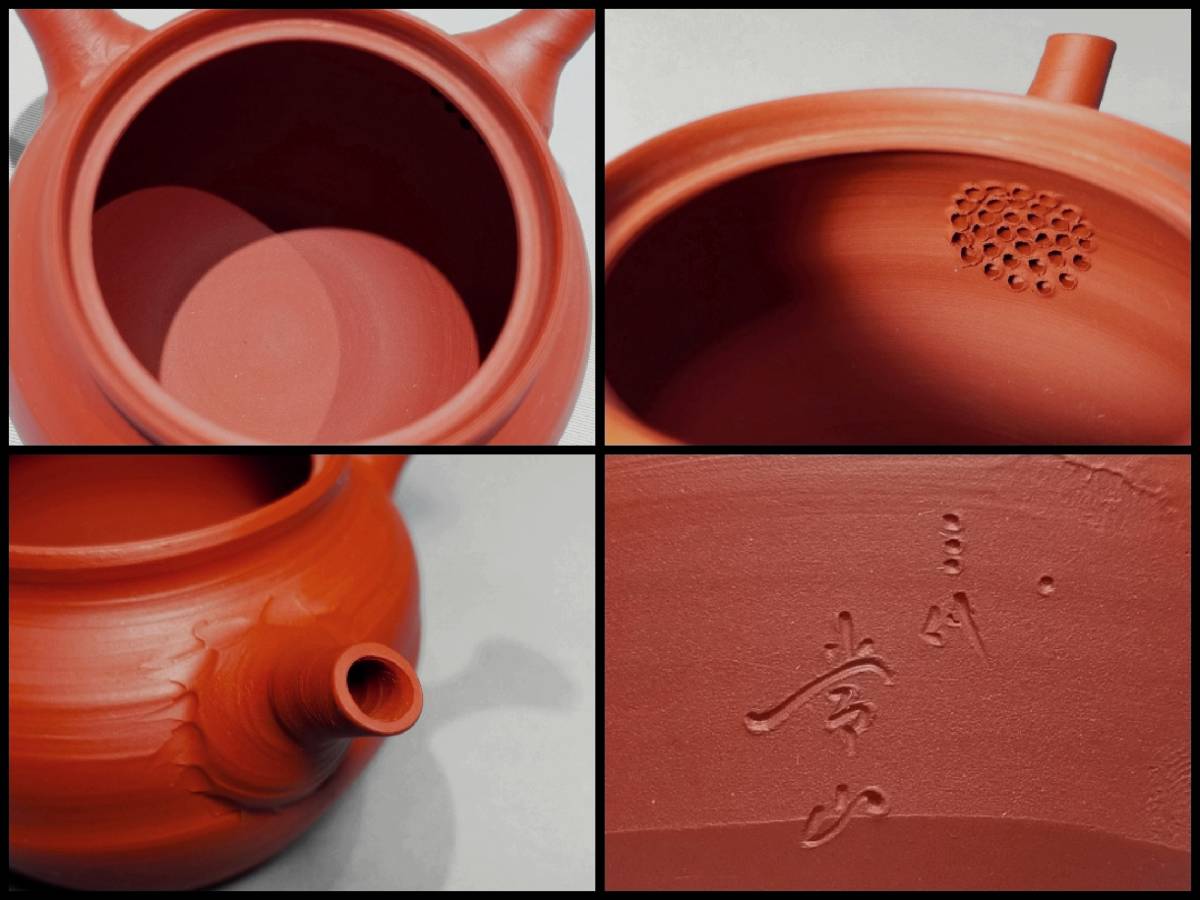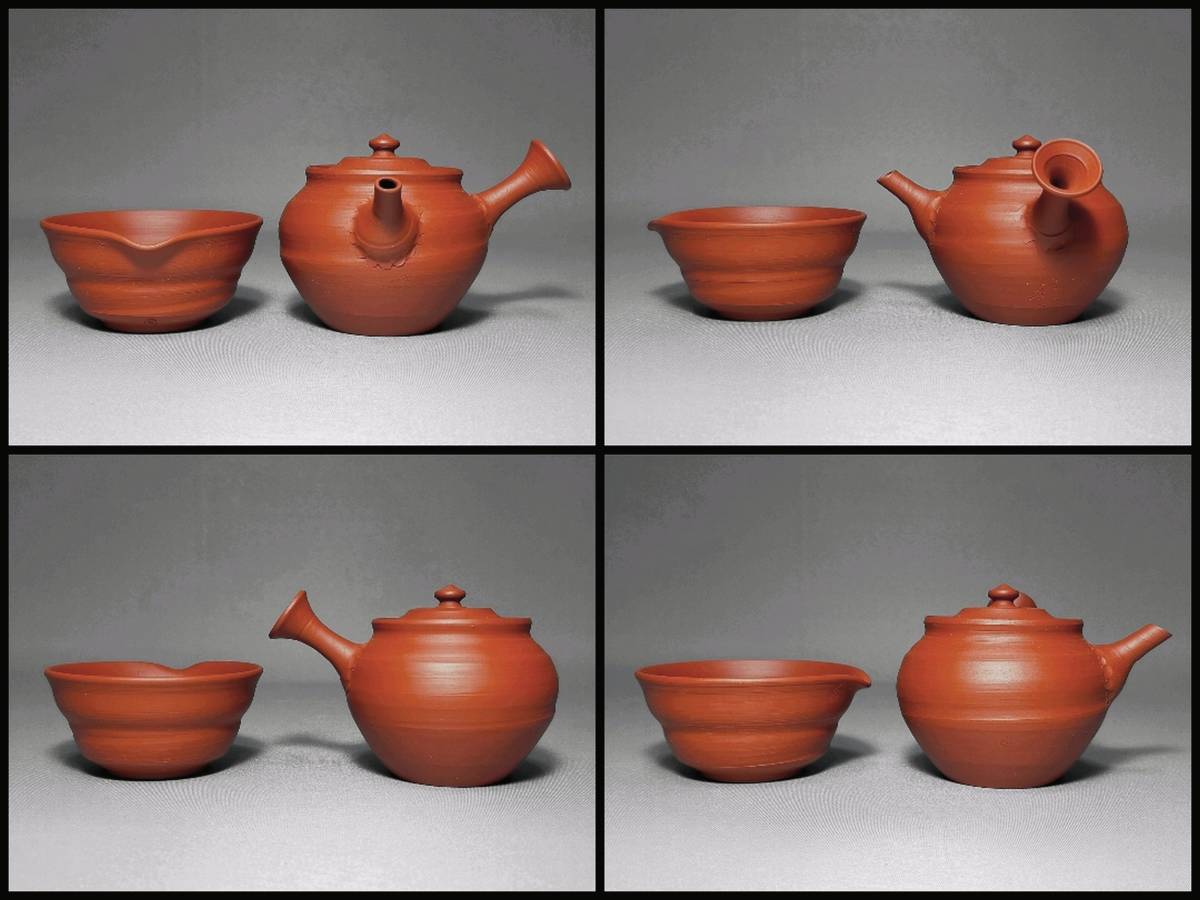 NO16 常滑焼 朱泥 煎茶器揃 人間国宝 三代 山田常山 造 茶器 横手急須 湯冷 茶碗五客 共布・共箱 煎茶道具 逸品 未使用