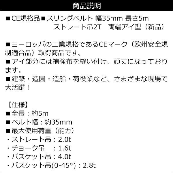 商 品 説 明 | CE規格品 スリングベルト 幅35mm×5m ストレート吊 2T【4本セット】 (新品・未使用)