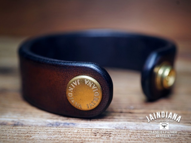| ハンドメイド サドルレザーブレスレット 超極厚6㎜ ビンテージ染めブラウン | ||||