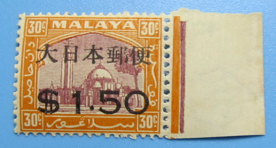 南方占領地切手 マライ セランゴール州 30C $1.50 大日本郵便 裏のり ヤケ 丸まり 未使用