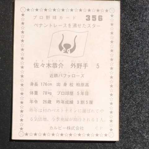 カルビー1976 プロ野球カード No.356 ペナントレースを沸かせたスター 佐々木恭介(近鉄)