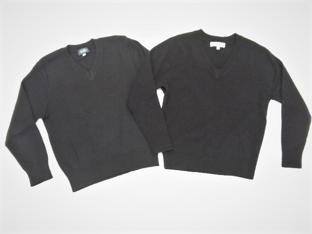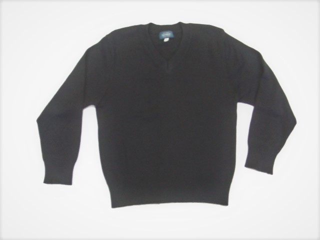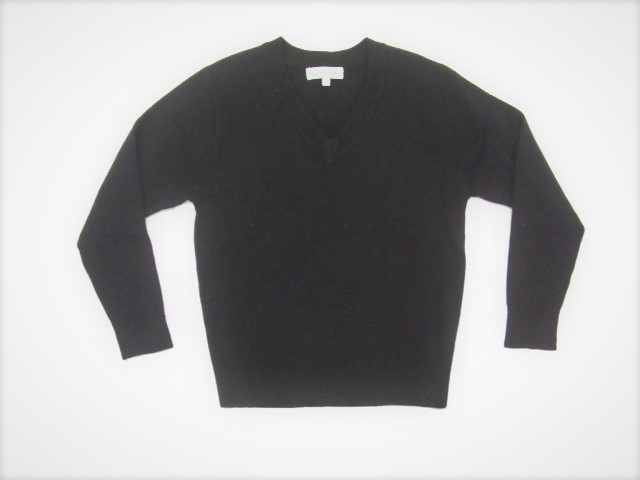 シンプルなデザインのVネックの紺色セーターです。