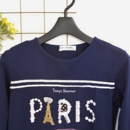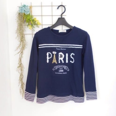 ポンポネット pom ponette ナルミヤ M 150cm 可愛い プリント レース 長袖 Tシャツ 紺 ネイビー トップス