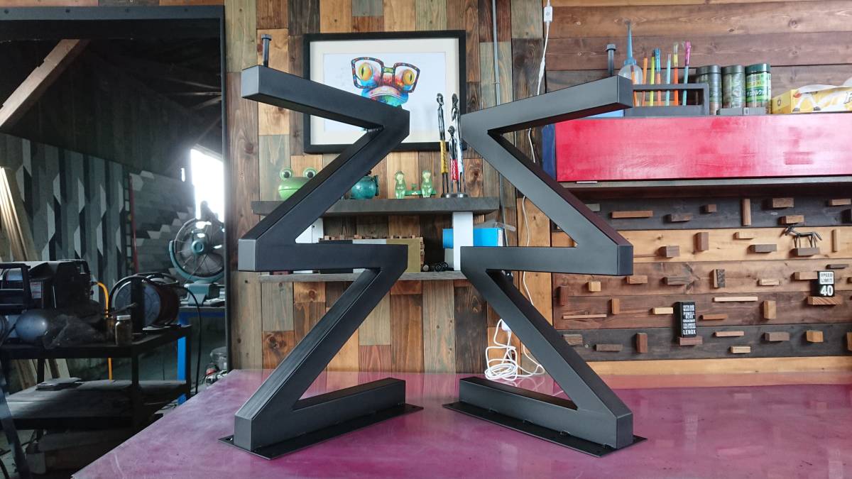 ハンドメイドの鉄脚2脚1組での出品です。50mmのフレームを使用しておりますので、とても重厚感があります。デザインも奇抜でかっこいいと思います。 Z好きにはたまらない仕様となっております。