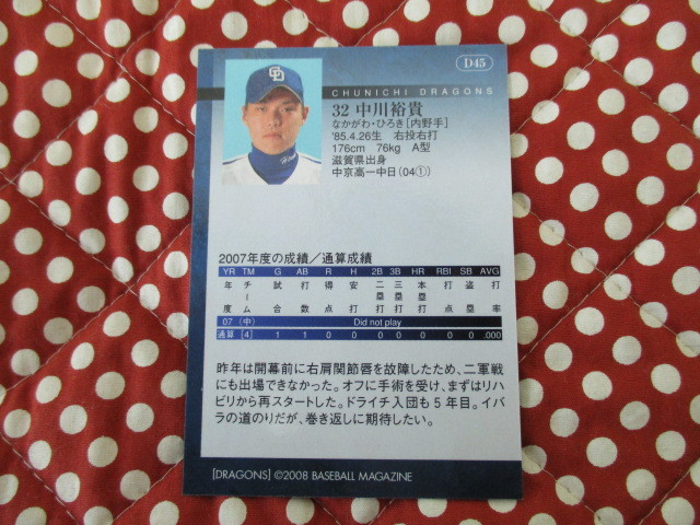 ★BBM 2008 中日ドラゴンズ★〔D45・中川裕貴〕ベースボールカード トレカ♪