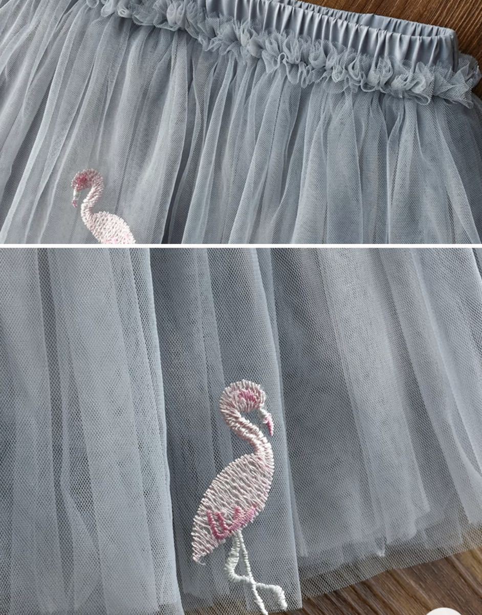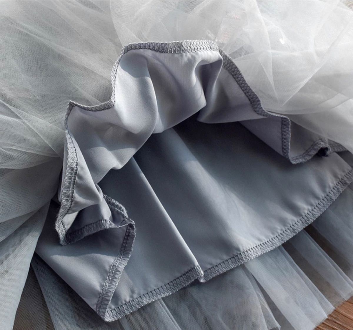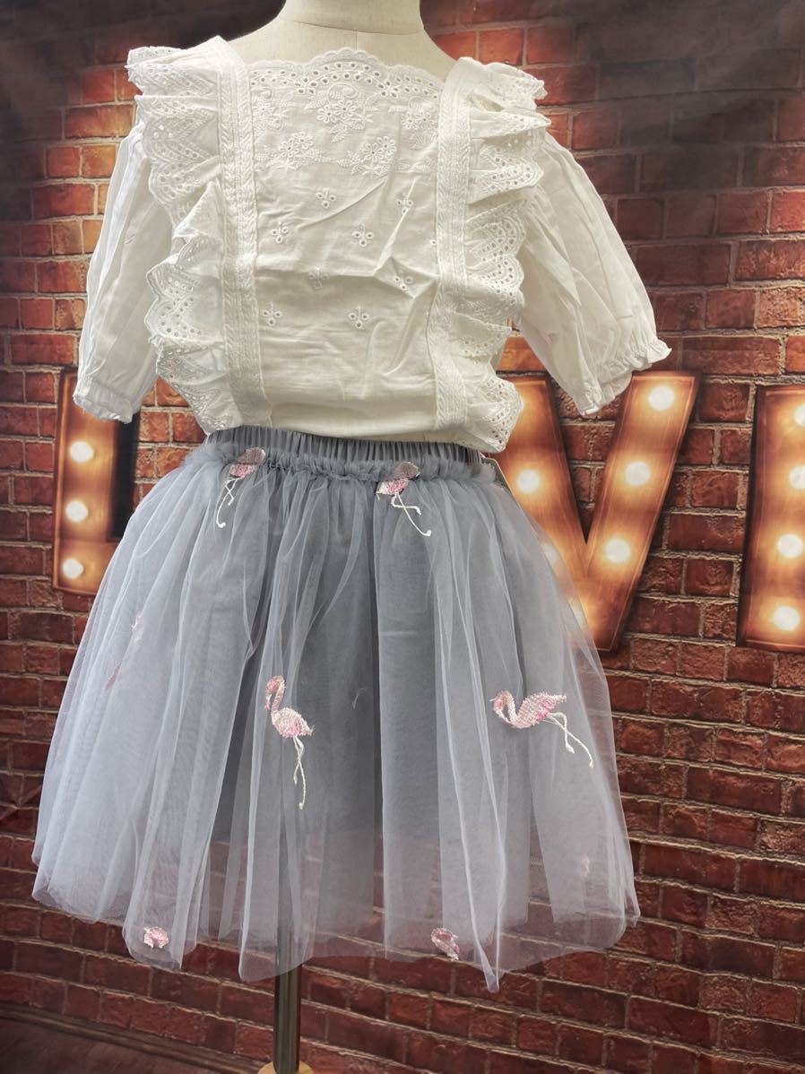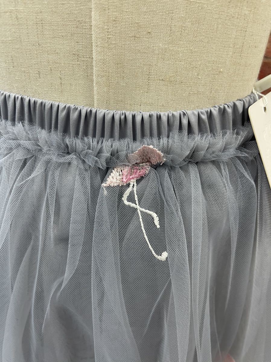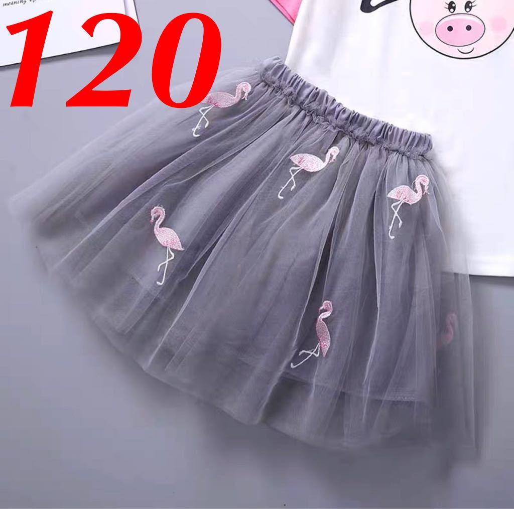 子供ミニチュールスカート 刺繍鶴 グレー色 120サイズ