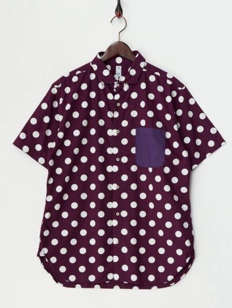 ★KATO PURPLE×WHITE ドット柄 ポケット切り替え半袖シャツ S★
