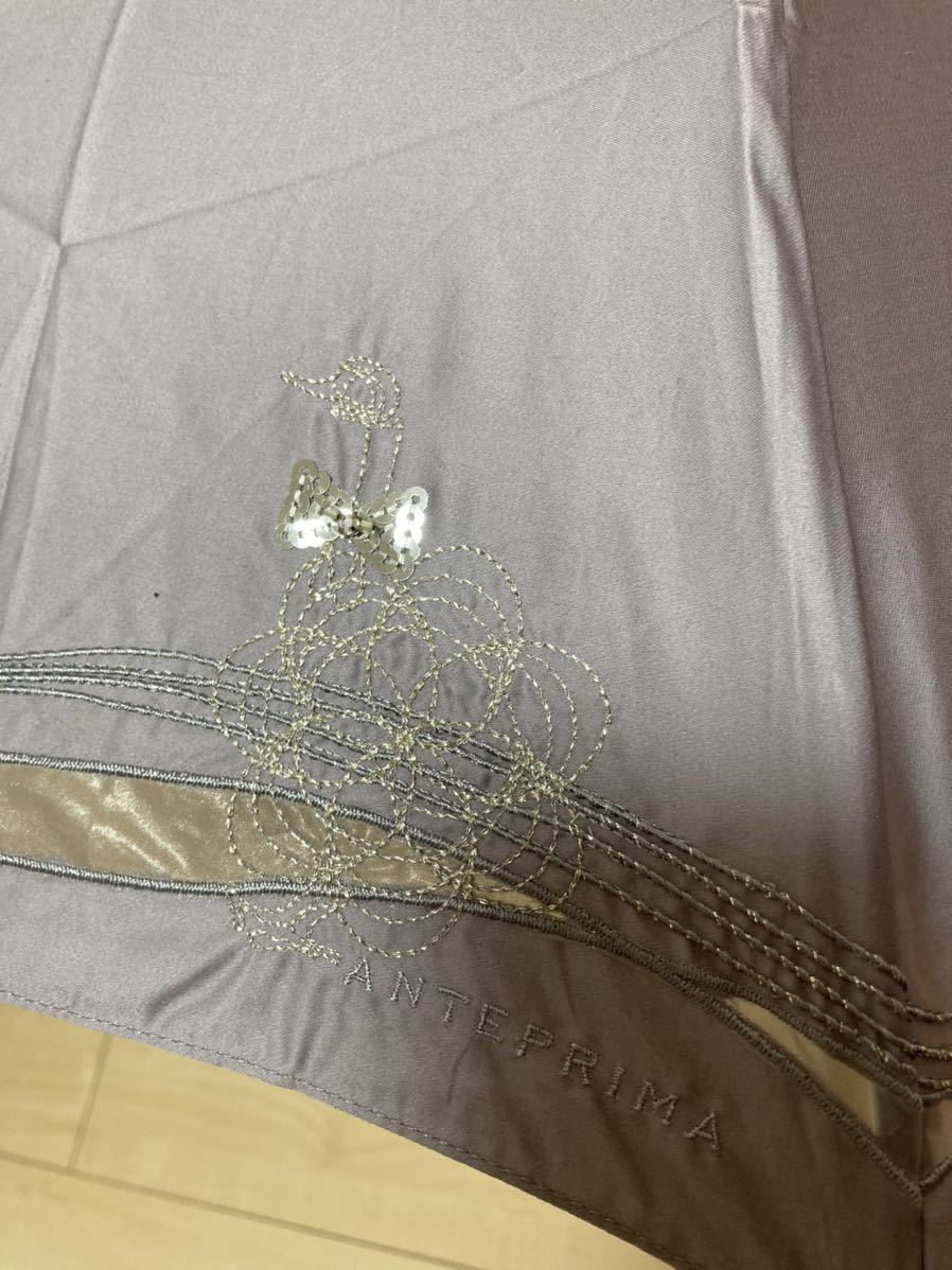 アンテプリマの折りたたみ日傘です。スパンコールやビーズの刺繍が施されたとても可愛いお品です。