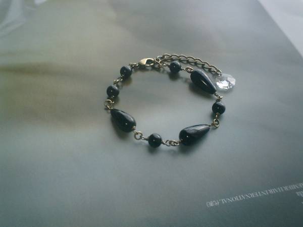 ミニシアターの余韻・・シリーズです♪赤い靴の少女・・シックなオニキスのブレスレットです♪大人仕様のデザインです♪6ミリの丸玉、18×8ミリのドロップのオニキスにアンティークチェーンを合わせて可憐な表情です♪長さは全長23センチ位で調節自由です♪お揃いのブレスレットやネックレスやピアスも出品しています♪♪シンプルで飽きのこないいつまでも着けられるデザインを考えて作りました!ハンドメイドをご理解頂いてノークレーム、ノーリターンでお願いします