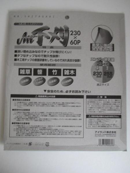 | 【商品説明】 iwood ミスター 下刈 チップソー 230×60P新品になります。 山林下刈専用チップソー 雑草、笹、竹、雑木 ・刈れ味抜群! ・ラクラク下刈り! ・超軽量!超寿命! 深い埋め込みなのでチップが飛びにくい! タフなチップなので耐久性抜群! 木工用チップの側面研磨をしているので刈れ具合が抜群! 写真にあるものがすべてです。 本品は新品、未使用品ですが箱等に多少の汚れ細かな傷等がある場合がございますご了承ください。 完璧な商品を求める神経質な方はご入札なされないようお願いいたします。 ノークレーム、ノーリターン、ノーキャンセルでお願いいたします。 上記の記載をご理解の上ご購入のご検討をお願い致します。 【お支払方法】 ゆうちょ銀行、 ジャパンネット銀行 Yahoo簡単決済 【発送について】 沖縄・離島は別途送料がかかりますので、お問い合わせください。 注意事項 当店での出品中の商品は店頭と他サイトとの同時販売の為在庫切れなどの場合もございます、在庫切れの場合納期がかかります入札前に必ずご質問ください。 送料と振込手数料はお客様ご負担になります入金の確認後発送とさせていただきます。送料料金に関しましては梱包手数料梱包費が含まれております。 商品説明にもございますよう、多少の汚れ等ございます。完璧な商品を求める方は、入札をお控ください。 お客様都合による返品・交換は一切受け付けておりませんので、必ず詳しい程度をご確認の上ご入札下さい。気になることがございましたらご遠慮なく質問して下さい。 撮影時の状況及びお客様のPC環境等の諸事情により実際の色目と違って見える場合がございますのでご理解のうえご入札お願い致します。 在庫切れ等の場合出来る限り早急発送を心掛けておりますが、出荷まで数日かかる場合がありますので、お急ぎのお客様は在庫等お問合せ下さい 配送に補償がついておりません補償発送をご希望の方は申し出ください。ノークレーム、ノーリターンノーキャンセルでお願い致します。 土、日曜日、祝祭日、はネット業務はお休みのため、商品の発送及びご連絡等、質問への解答 が休日あけに遅なる場合がございますがご了承ください。 管理番号iwood ミスター 下刈 チップソー 230×60P |