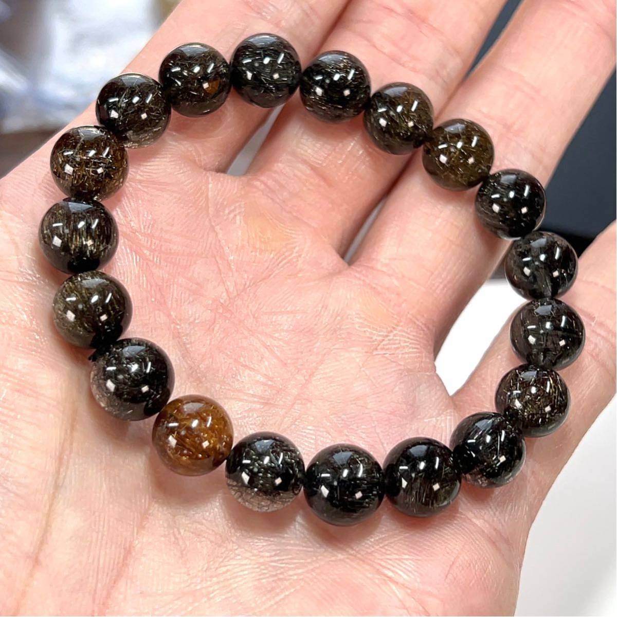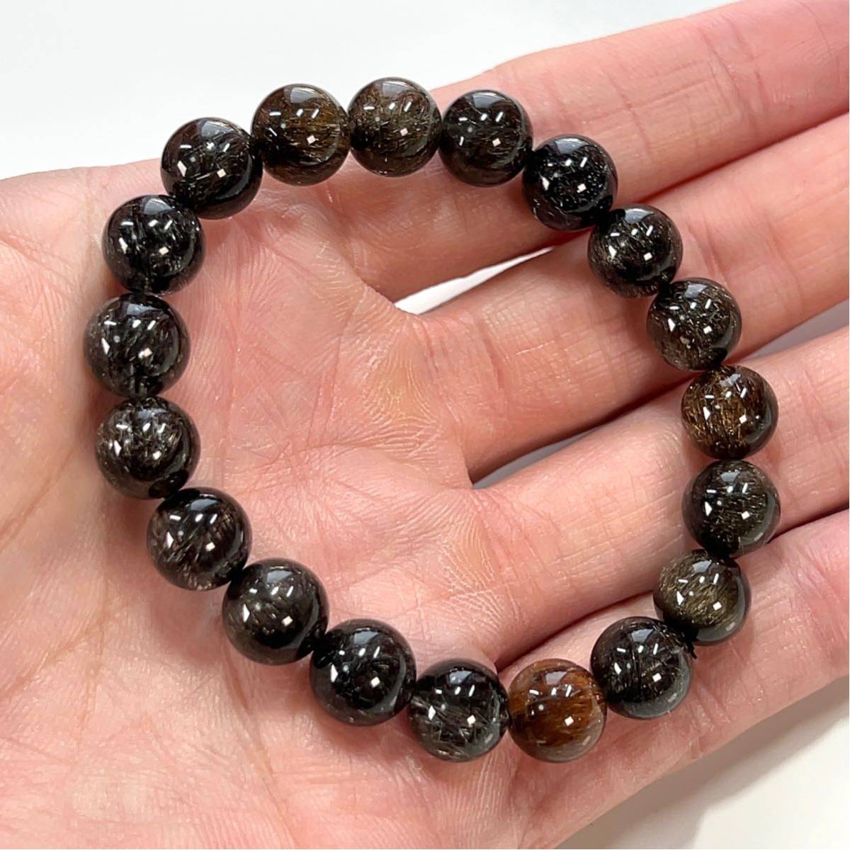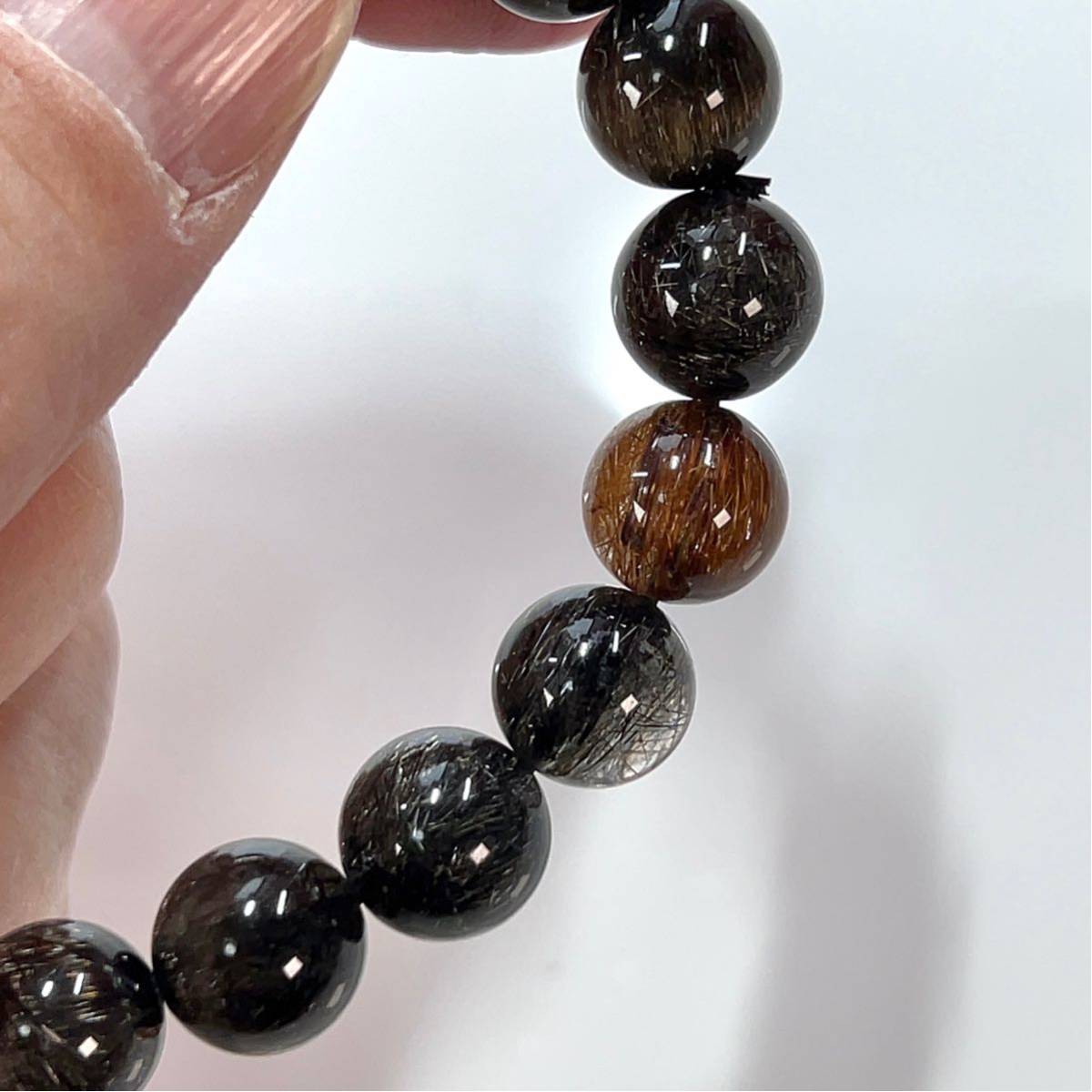 一見ブラックに見えますが透明の中の内包物にブラックだけなくシルバー、ブラウン、レッド、ブロンズの針が混ざってます