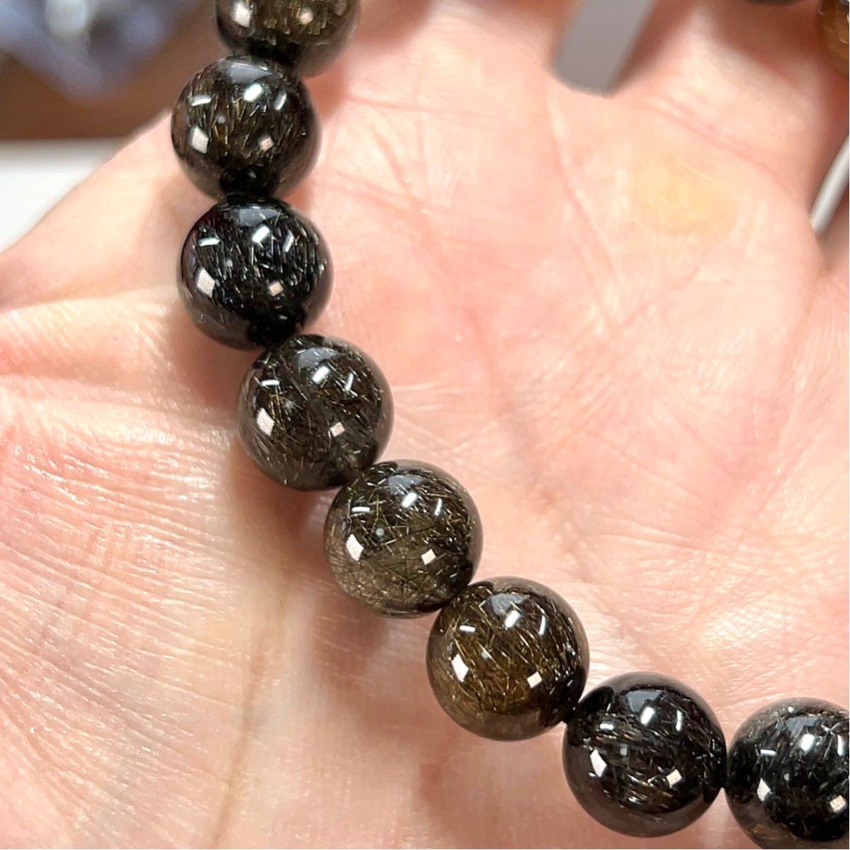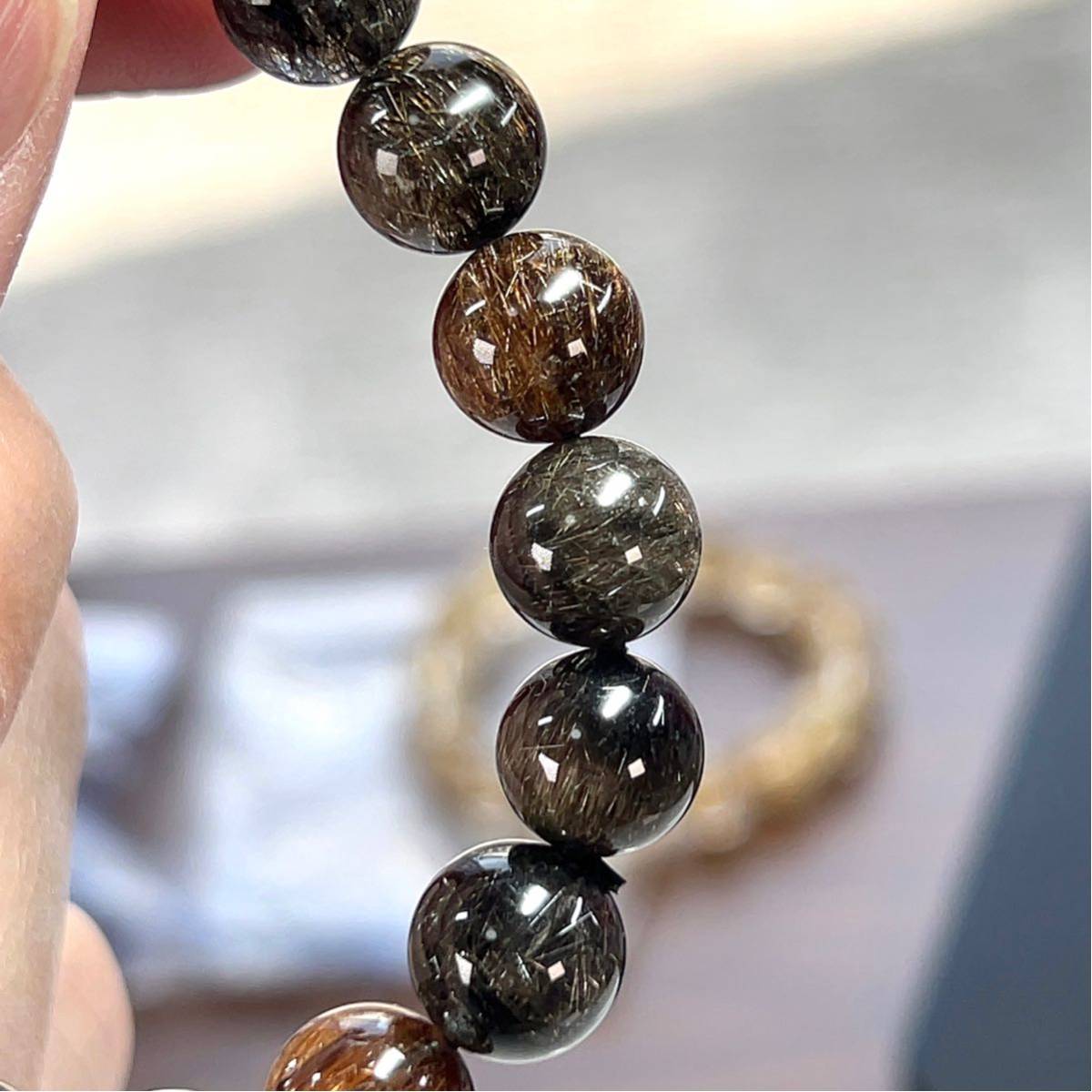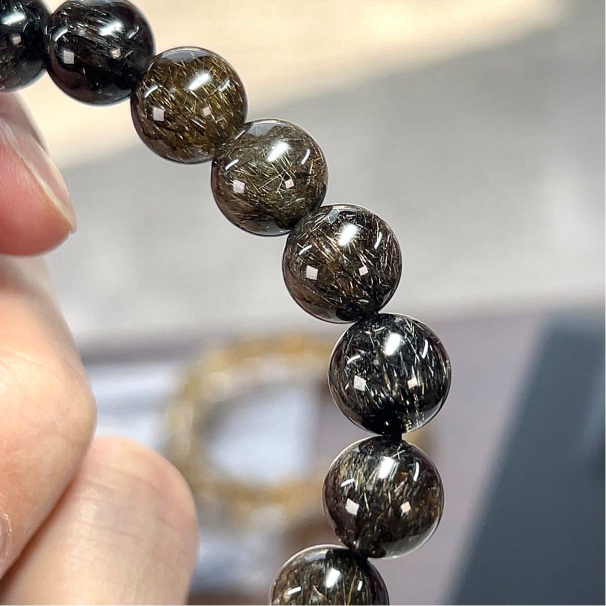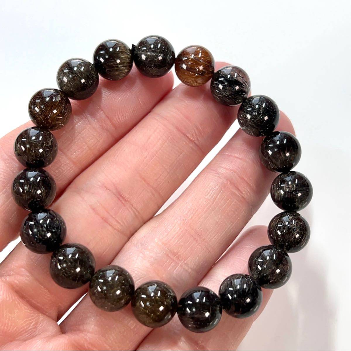 一見ブラックに見えますが透明の中の内包物にブラックだけなくシルバー、ブラウン、レッド、ブロンズの針が混ざってます