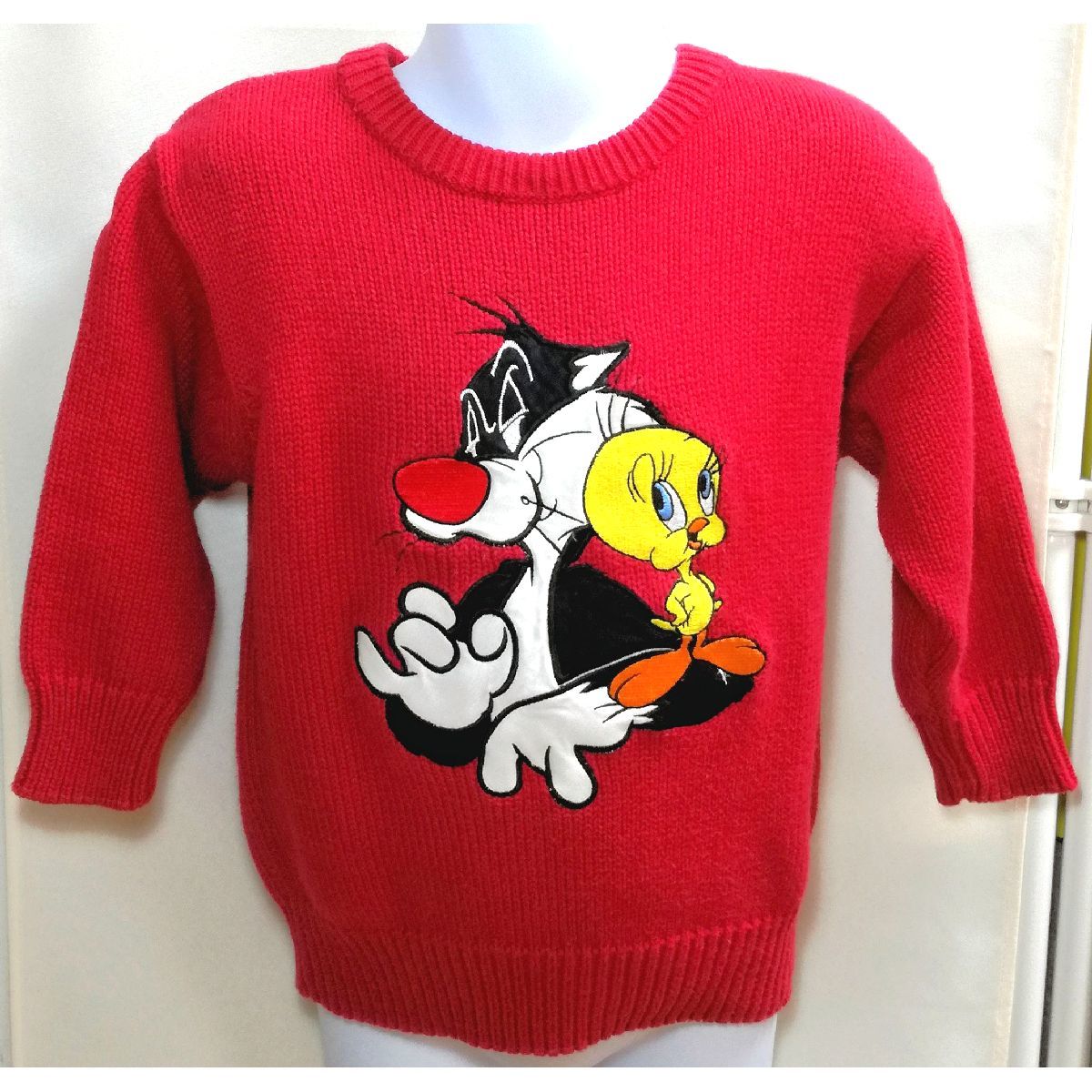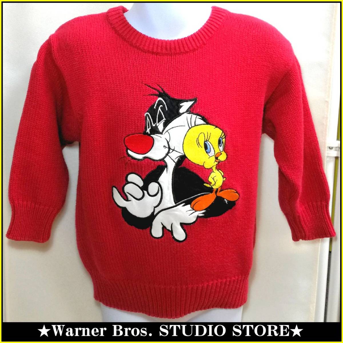 LOONEY ルーニー トゥイーティー シルベスター ヴィンテージ 綿 ニット セーター 90s Warner Studio Store XXS 120cm? 6~7歳? 赤 レッド