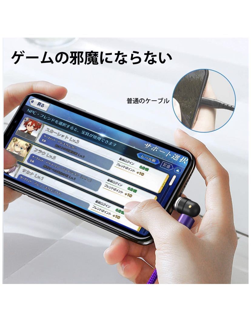 【180°+360°充電可能】180°+360°回転デザインを採用し、充電の角度を自由に調整できます。充電しながらゲームをしたり、動画を見たりする際、コネクタの接続部分が邪魔にならず、快適に楽しむことができます。充電しない時、磁気コネクターは防塵カバーとして活躍になり、コネクタも綺麗に保ちしております。
