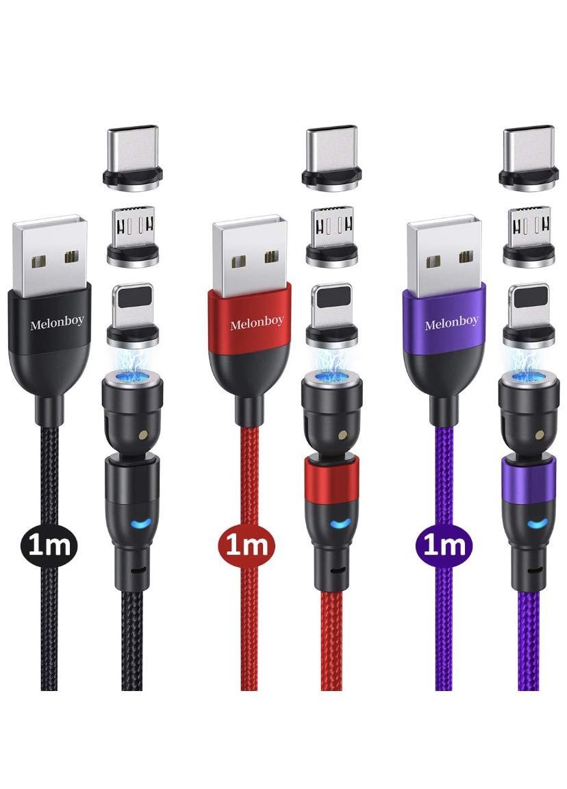 【急速充電】本製品は マグネット式3in1 充電 &データ転送ケーブルです。一本三役 Micro USB / lightning / Android /Type-c タイプC ケーブル がこの1本で全てのiOS、Android、Type-C設備に充電できます。優れた材質で作り上げたケーブル、内部は高純度線芯を使用して、厳しい品質検査を実施しており、一般的なケーブルより丈夫に作られて、急速充電対応可能です。