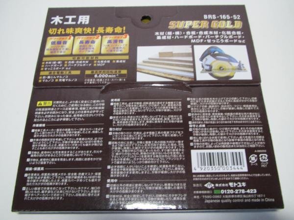 モトユキ 木工用 スーパーゴールド チップソー 丸のこ 165×52P BRS-165-52 |
