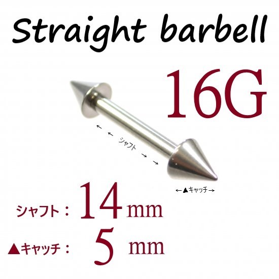 【 16G シャフト14㎜ キャッチ5㎜ 】 【1個】 ▲ コーンヘッド ストレートバーベル ピアス
