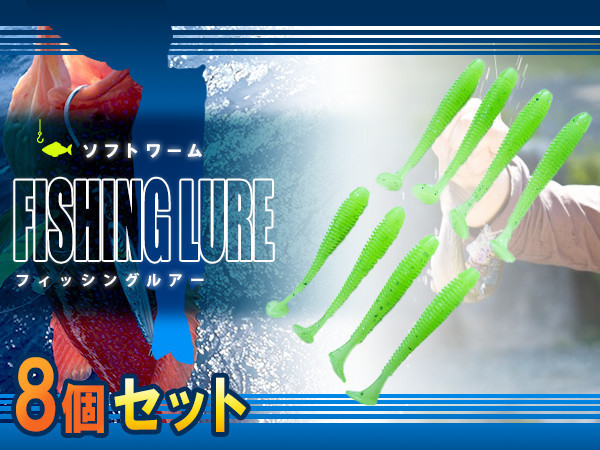 ソフトルアー 8個セット ワームセット 蛍光グリーン 2.3インチ 6cm/60mm シャッドテール プルプル 震える ジグヘッド スプリット