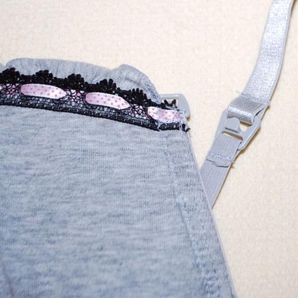グレー地に水玉柄リボンのマタニティブラジャー&ショーツ2枚セットです。 |